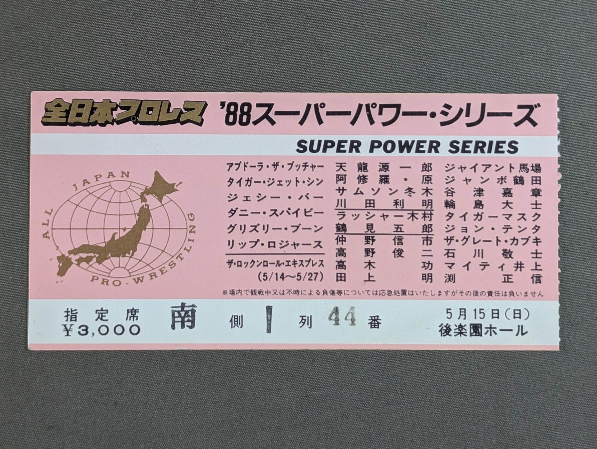 指定席 南側I列44番 / 天龍源一郎&阿修羅・原&サムソン冬木vs輪島大士&ザ・グレート・カブキ&石川敬士