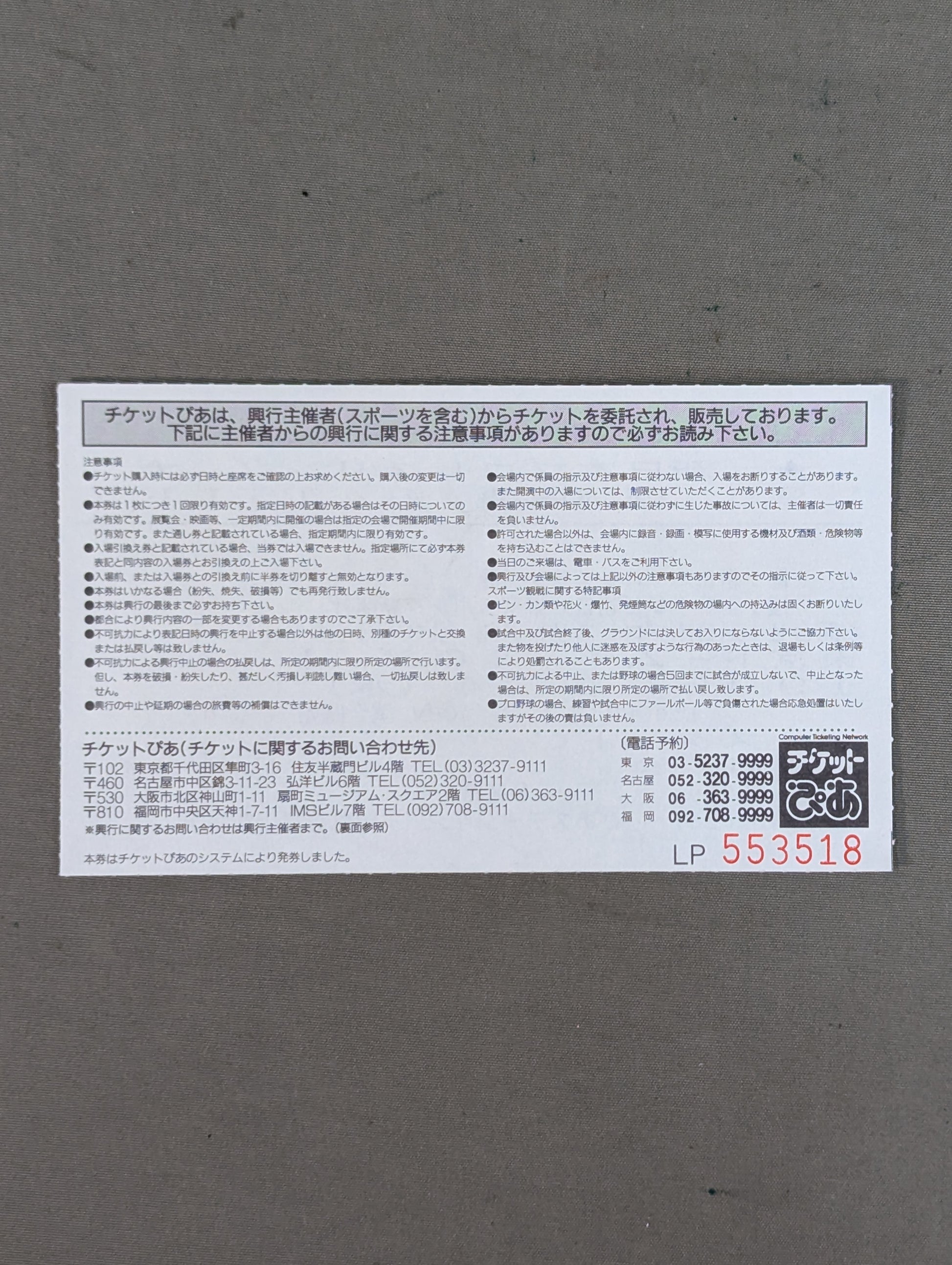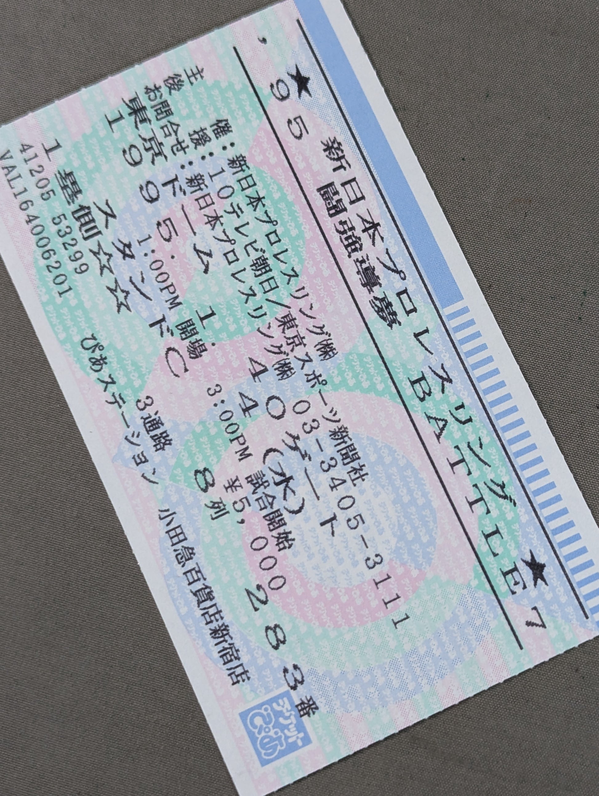 スタンドC 1塁側 8列283番 / 【IWGPヘビー級選手権】橋本真也vs佐々木健介 / 【FINAL COUNT DOWN BVD杯・格闘技トーナメント決勝戦】アントニオ猪木vsスティング