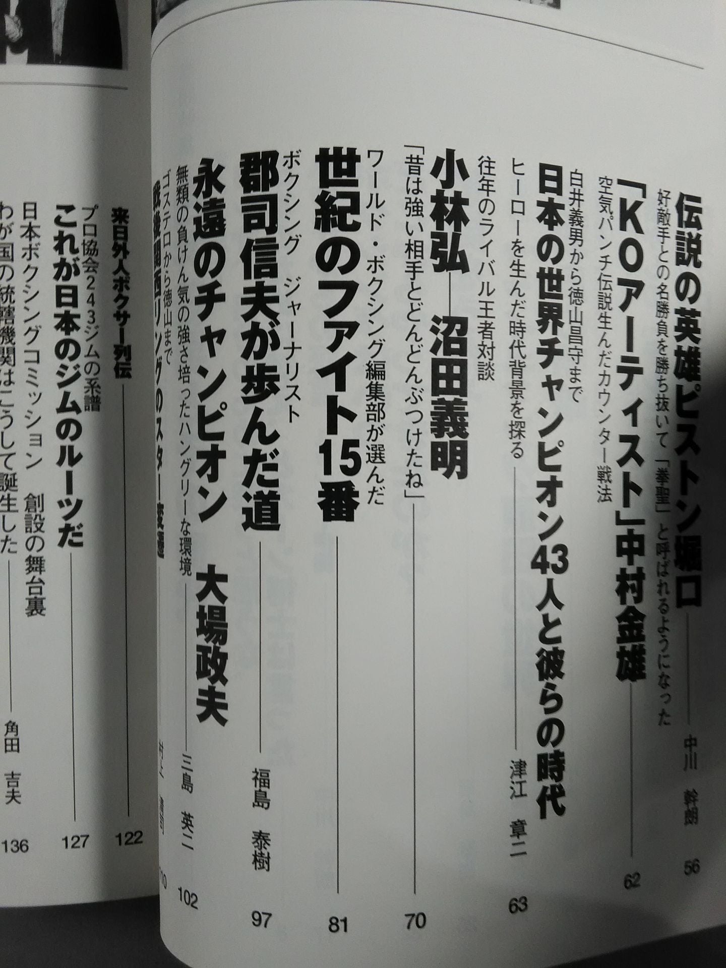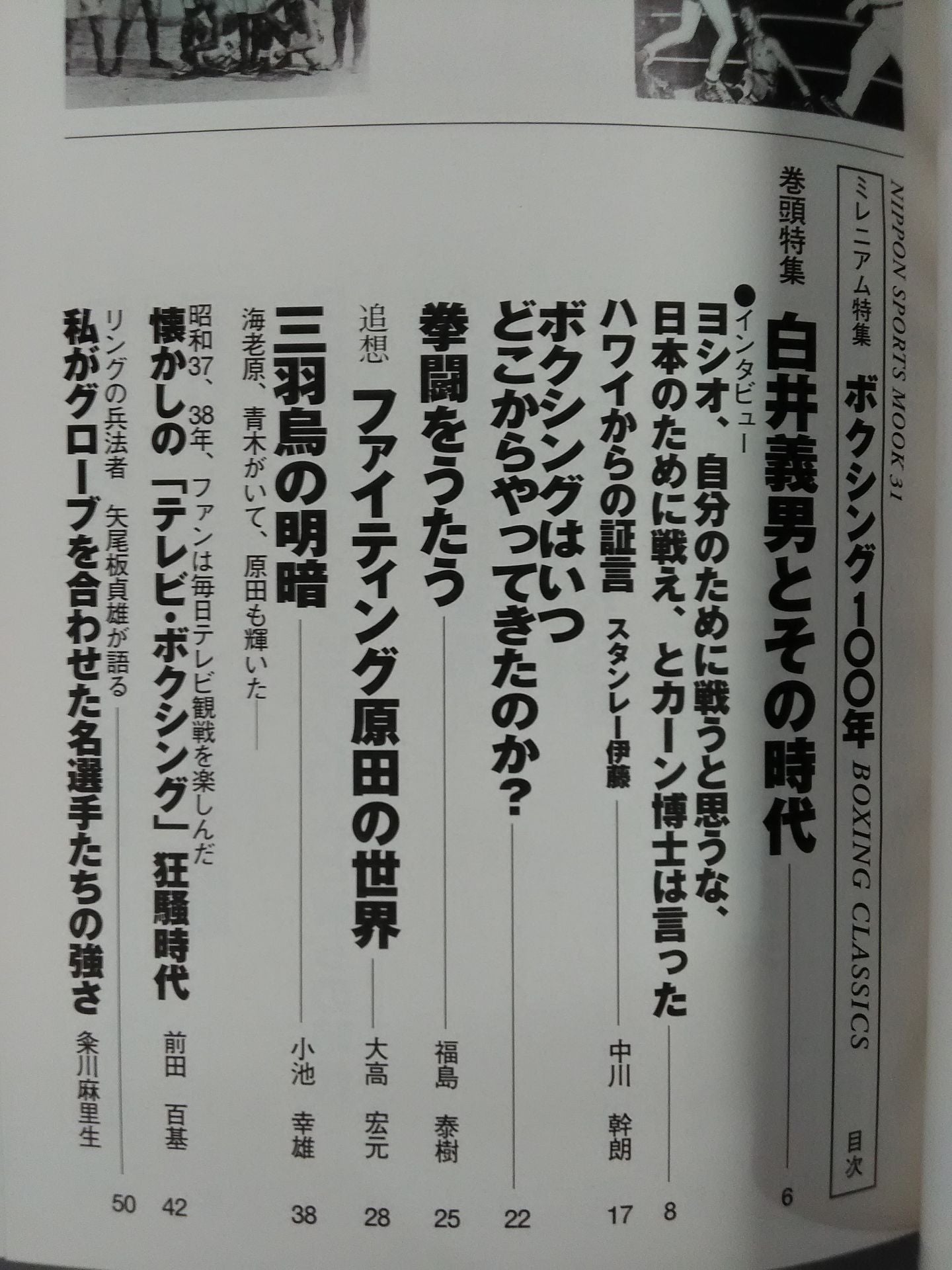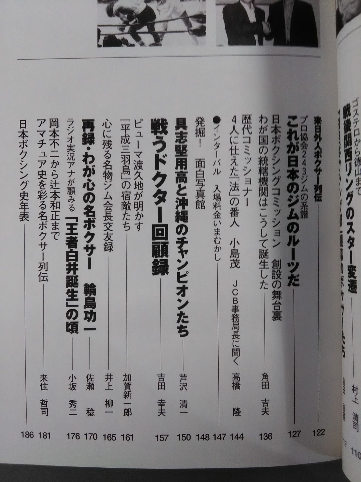 2001年 ムック 日本スポーツ出版社 / 日本初の世界王者となった白井義男のインタビューをはじめ、日本のボクシングの始まり、世紀のファイト15番、名選手たち、日本のジムのルーツなどの記事で日本のボクシングの歴史を振り返る。