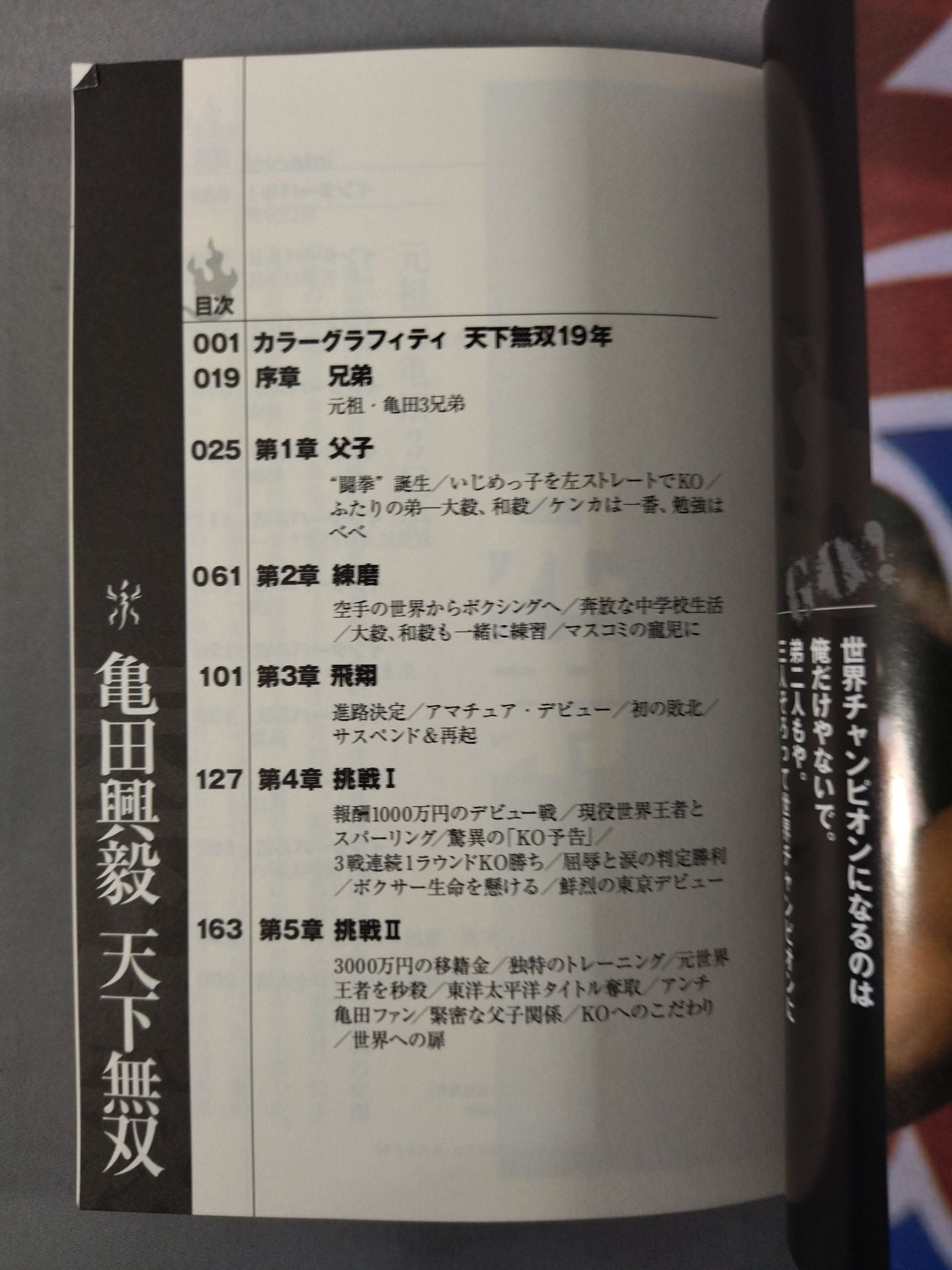 2006年 単(ソフトカバー) 徳間書店 / 鮮烈なKO劇と破天荒な言動で人気沸騰の亀田興毅が語り尽くした、激走と熱闘の日々。父親・兄弟・喧嘩・ボクシング・挫折、そして果てしない夢…。”浪速の闘拳”がすべてを語る!初めて明かされる19年間の真実!!