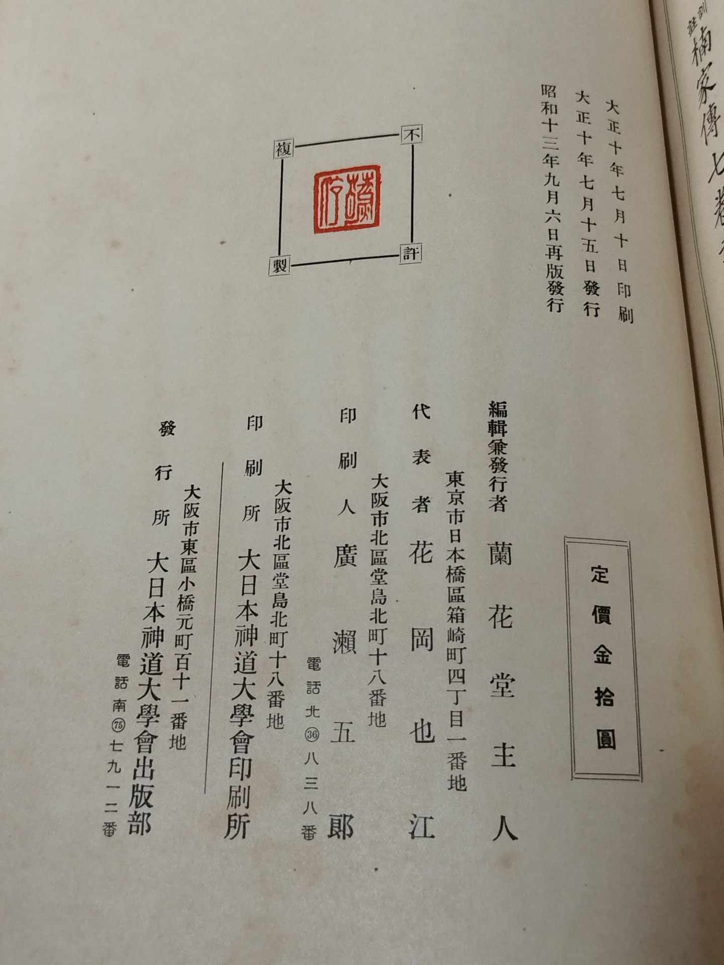 1938年 単(和装本) 日本神道大學會出版部 / 1921年(大正10年)に初版発行され、1938年(昭和13年)に再版された物。南北朝時代に活躍した南朝方の武家、楠氏(楠木氏)について記された書籍。