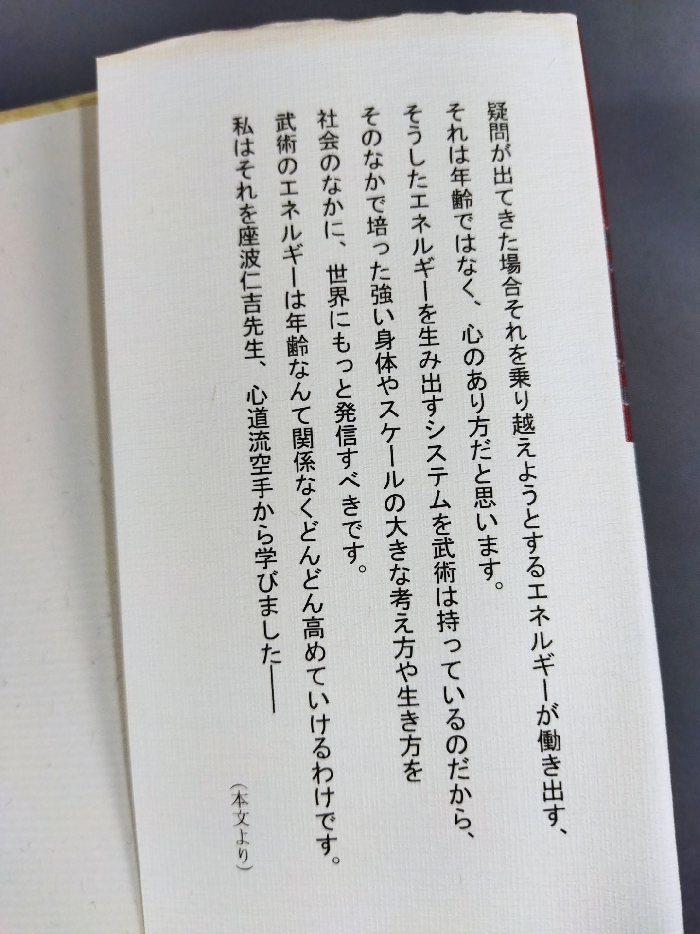 2000年 単(ハードカバー) 合気ニュース / 百見は一触にしかず、戦わずして勝つ。武道人として実業家として活躍する著者が、勝敗にこだわる相対的世界から自己の成長を目指す絶対的世界へと、現代空手の概念を打ち破る沖縄古伝空手の妙を語る。「合気ニュース」掲載。