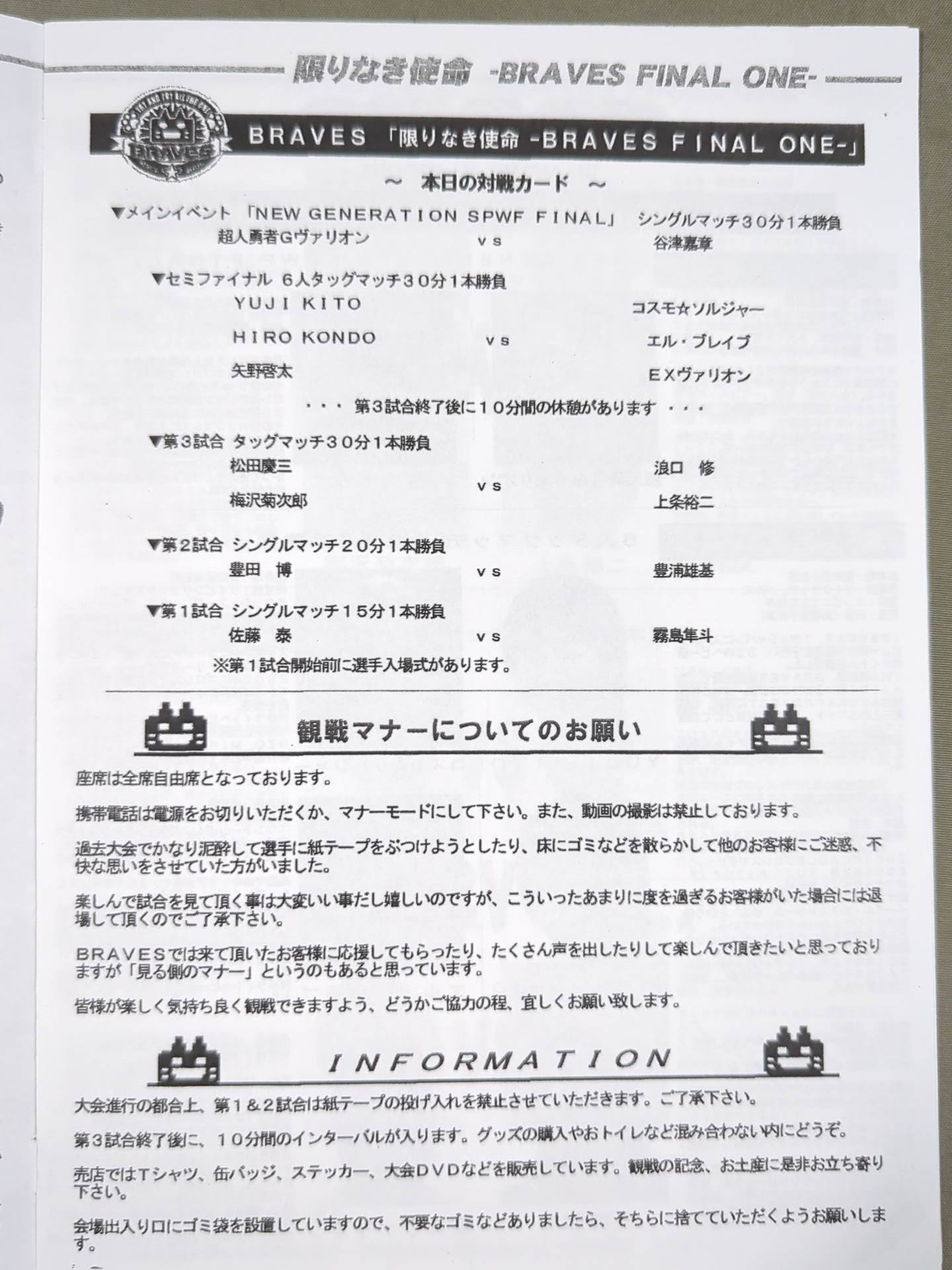 会場:高島平区民館ホール / 印刷対戦カード:超人勇者Gヴァリオンvs谷津嘉章 / ※コピー紙の冊子です。
