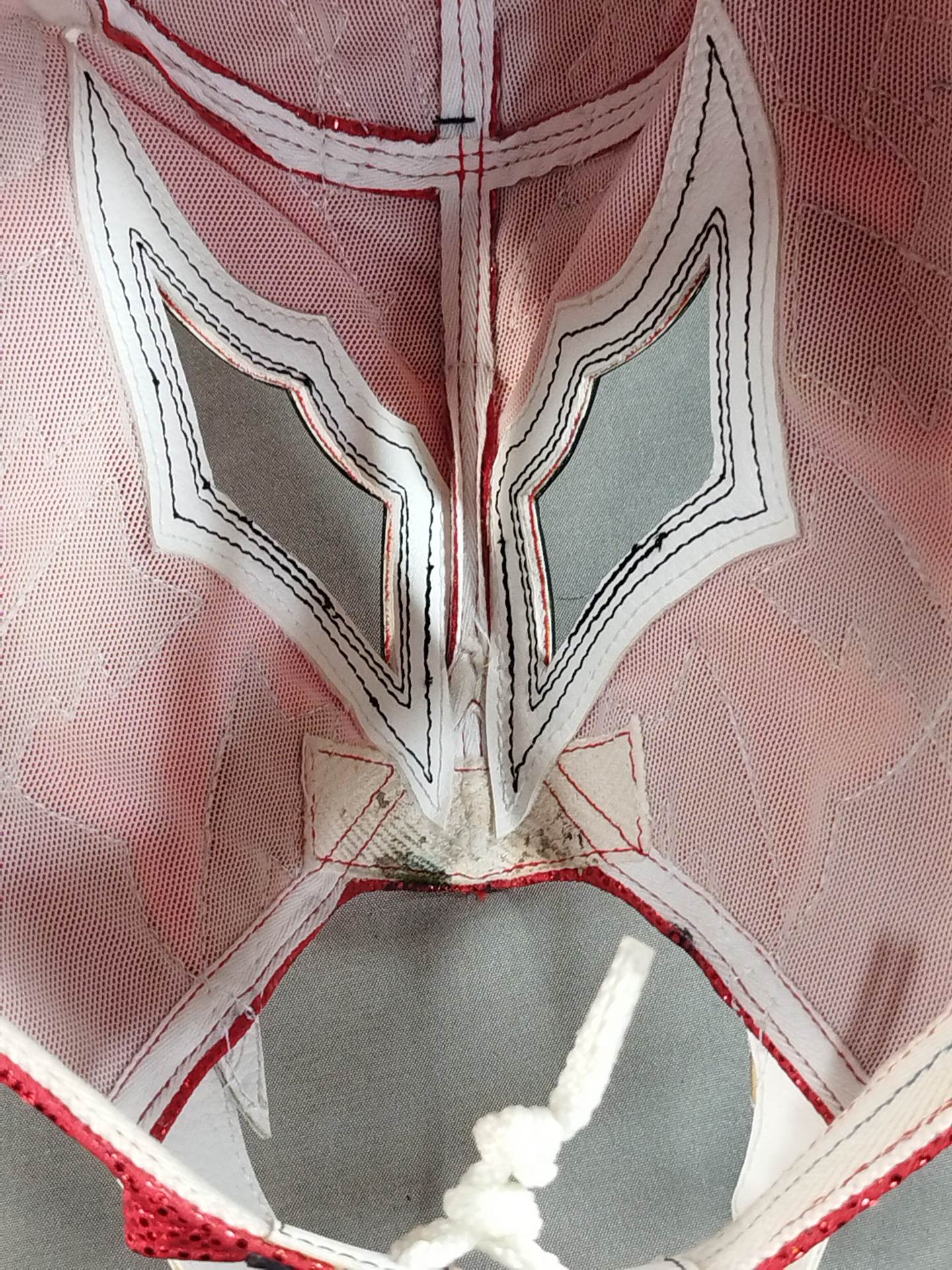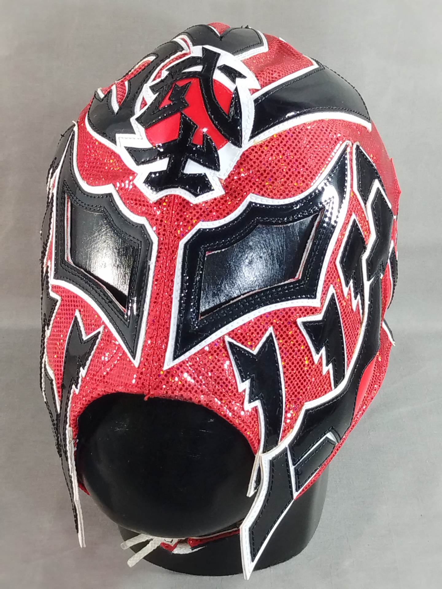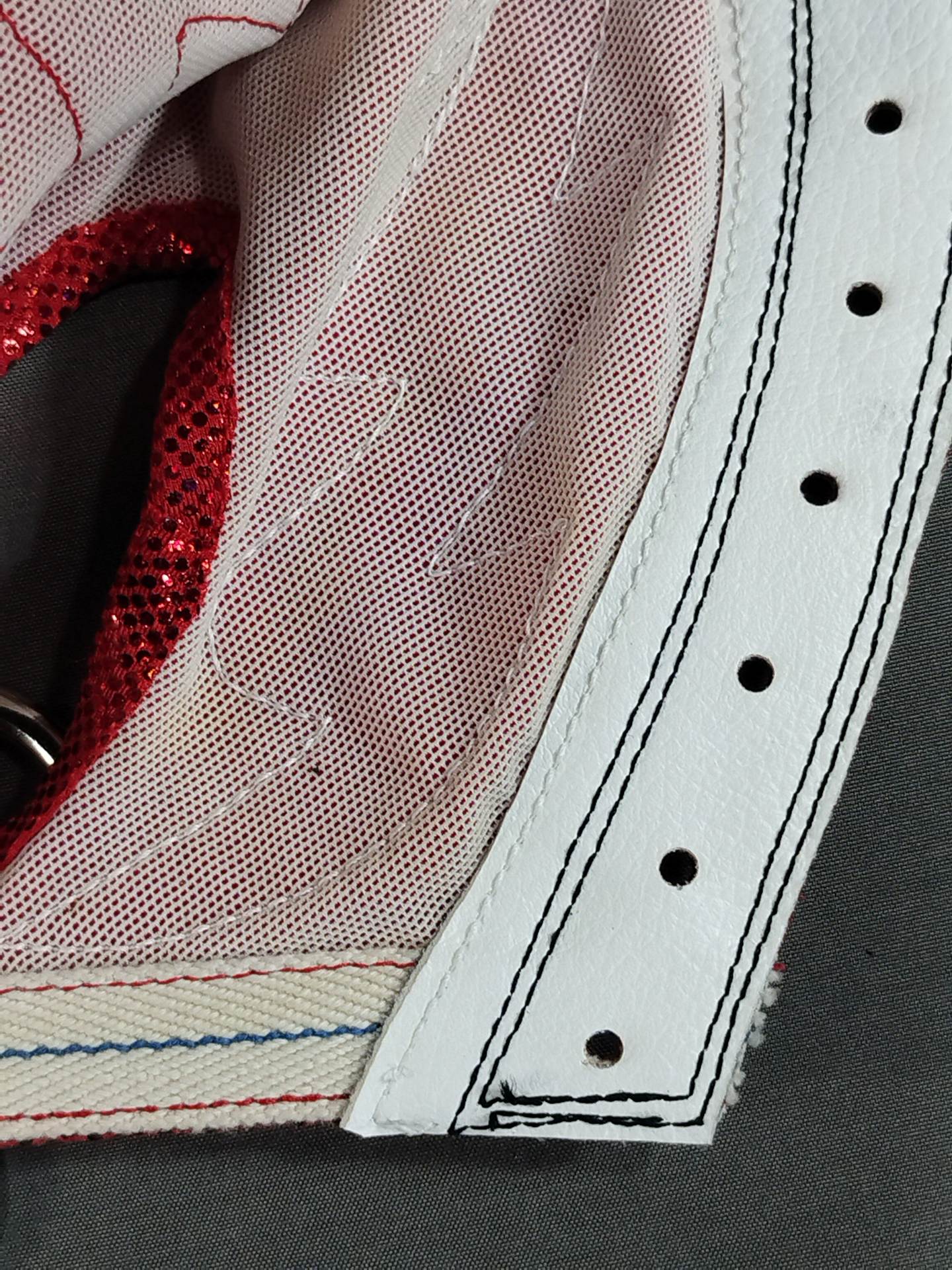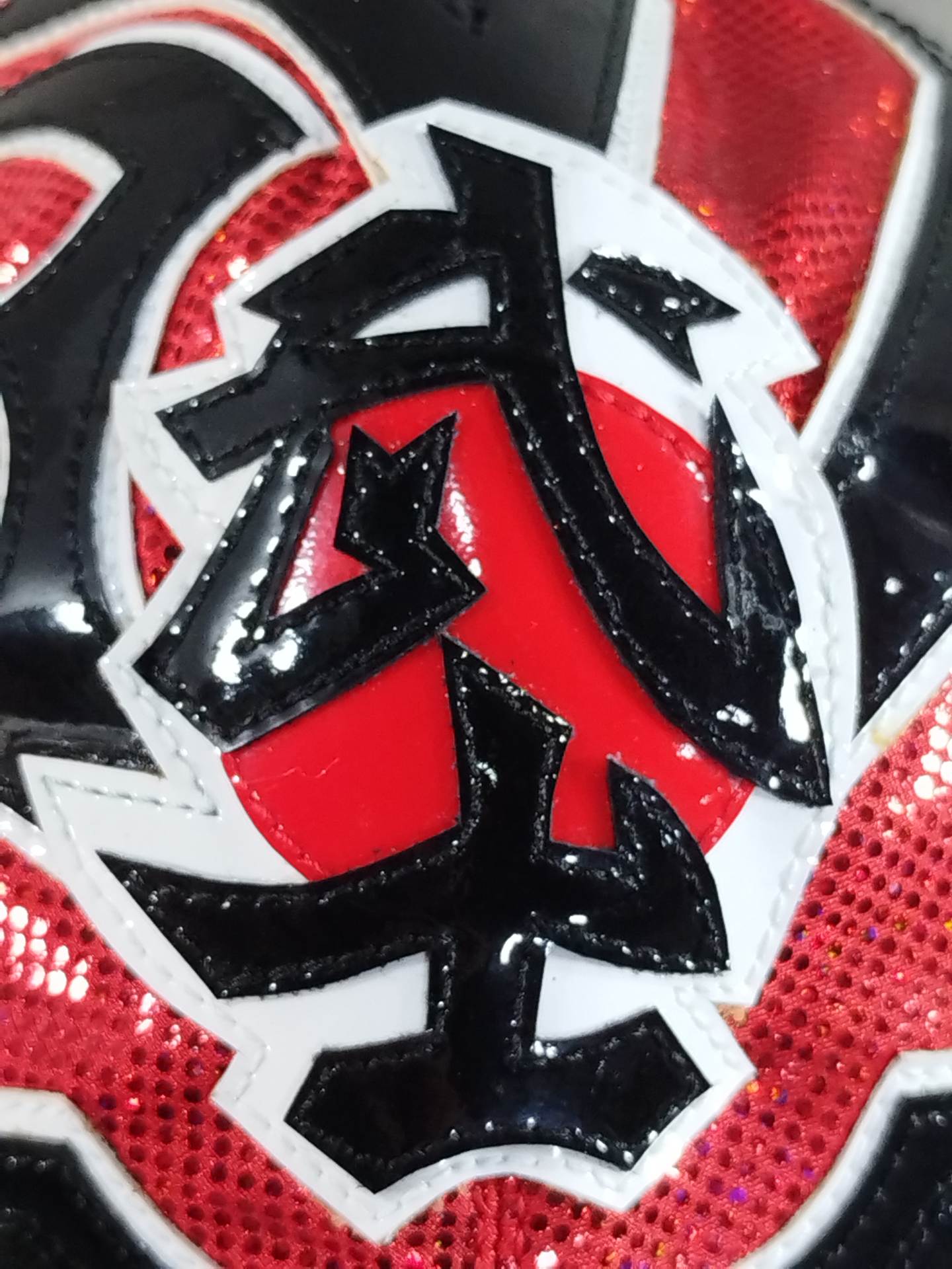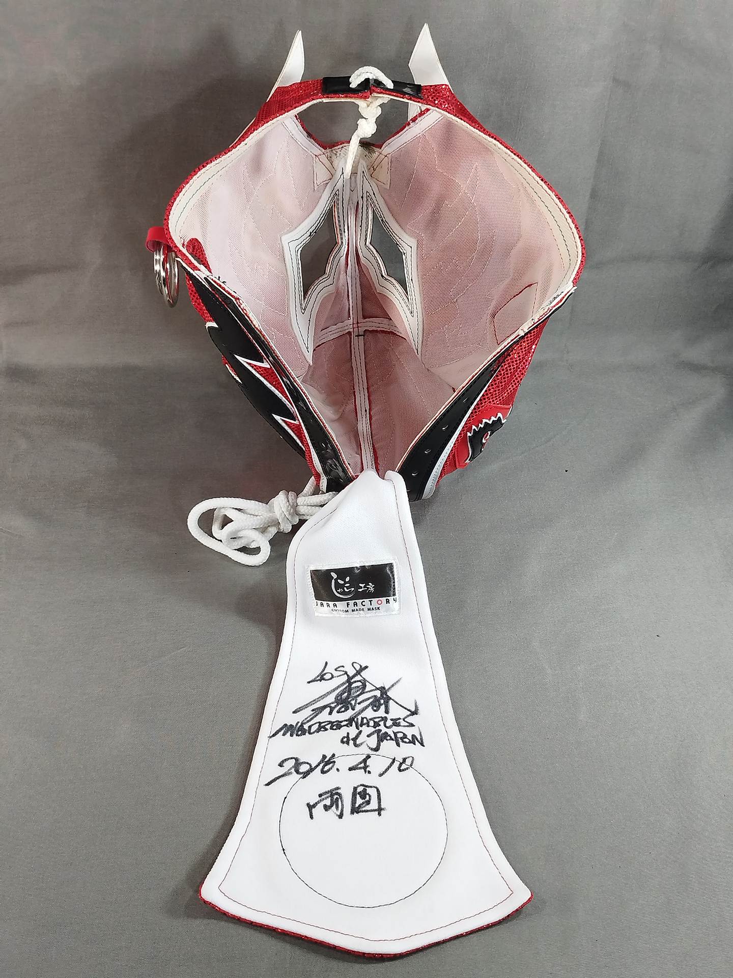 本人使用サイン入り(2016.4.10 両国) 着用写真付 赤特殊レオタード2重生地 白地黒フチ&赤フチ 2016年4月10日、両国国技館で行われた「INVASION ATTACK 2016」メインイベント終了後にL・I・Jメンバーでリングへ集合した際に使用していたもの