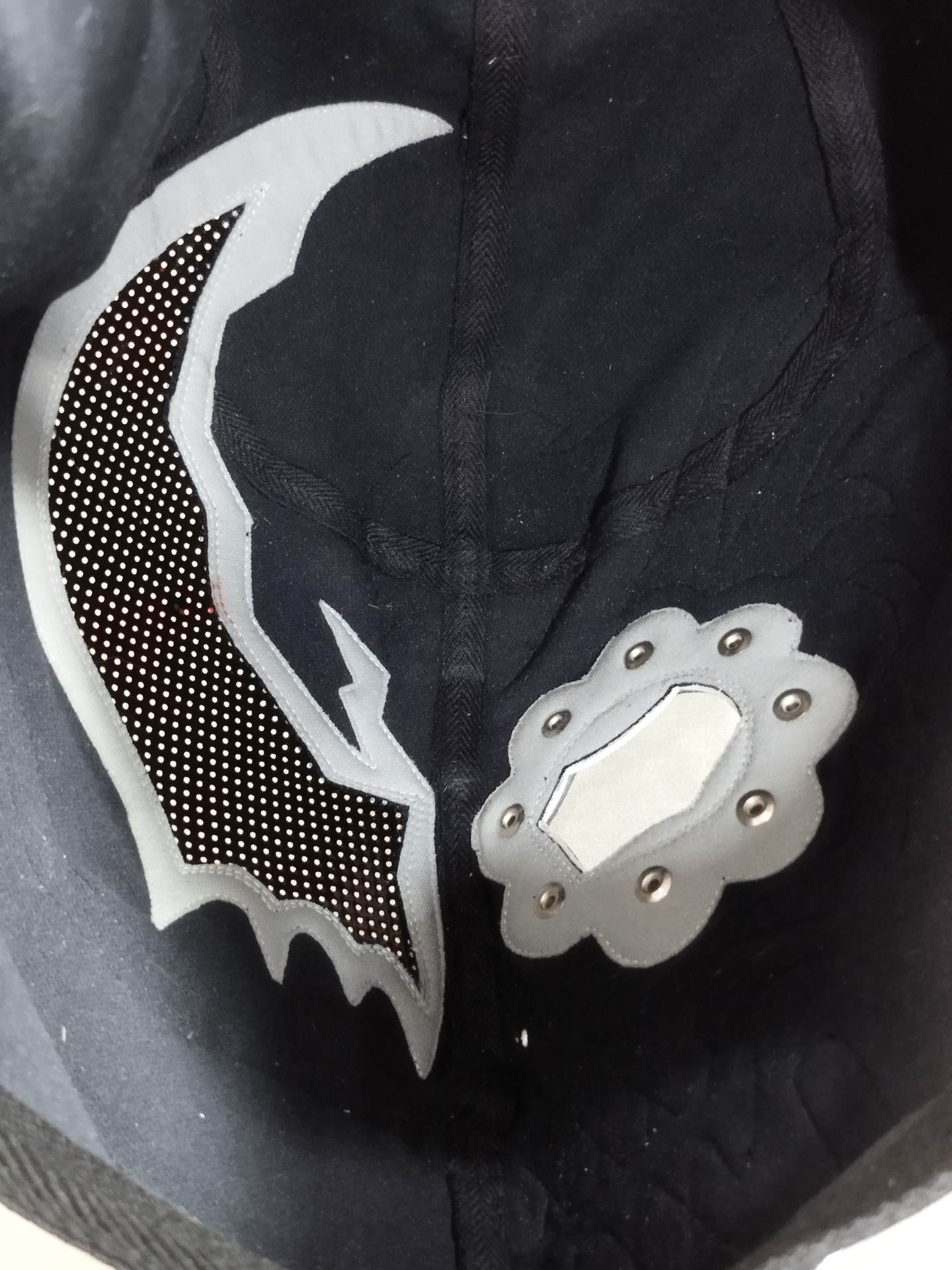 ★カラベラ×ベノム毒霧加工タイプ★ 本人使用サイン入り(2019.4.24 佐久) 着用写真付 黒ジャージ生地 黒特殊革フチ スタッズ加工あり