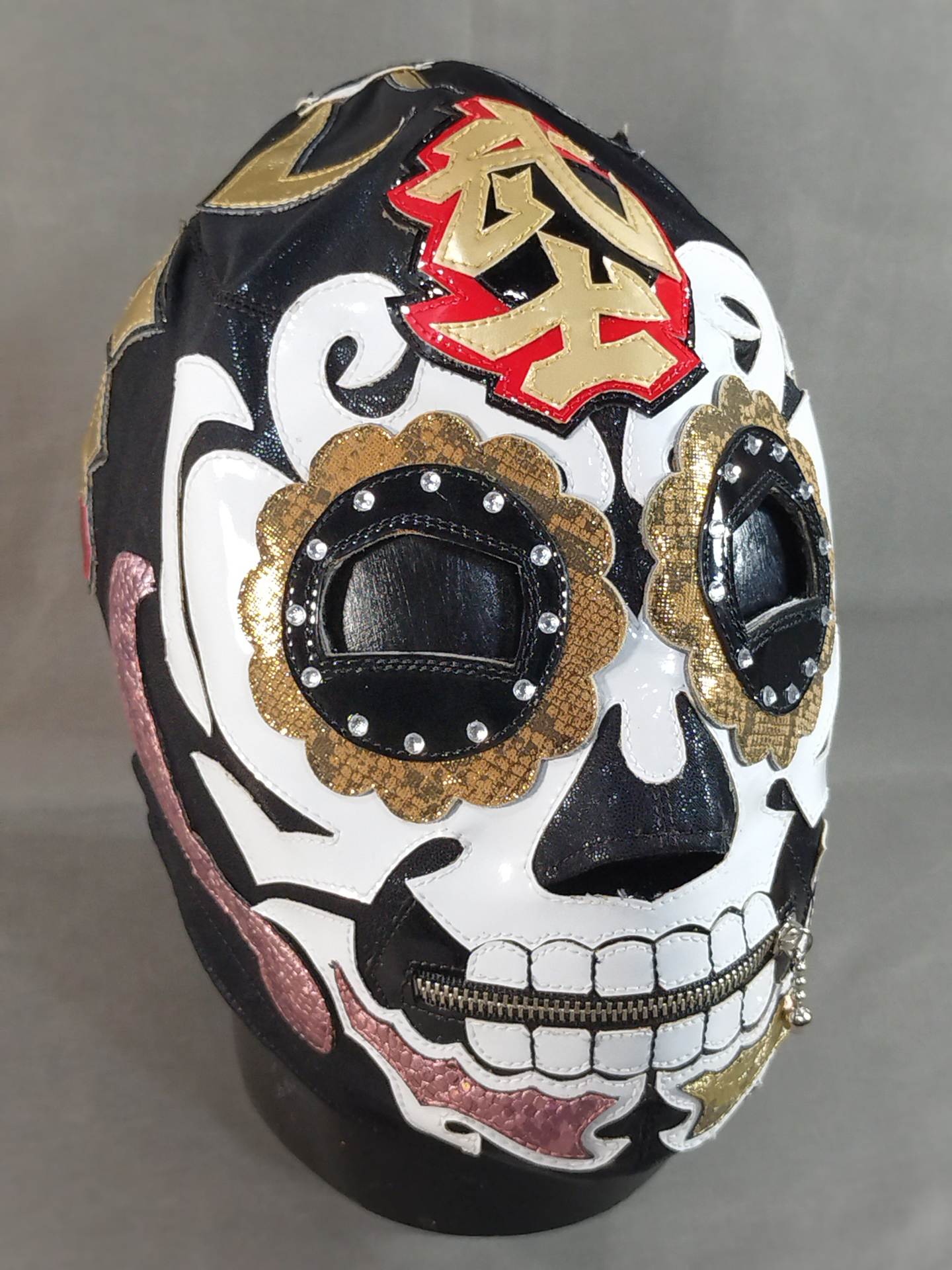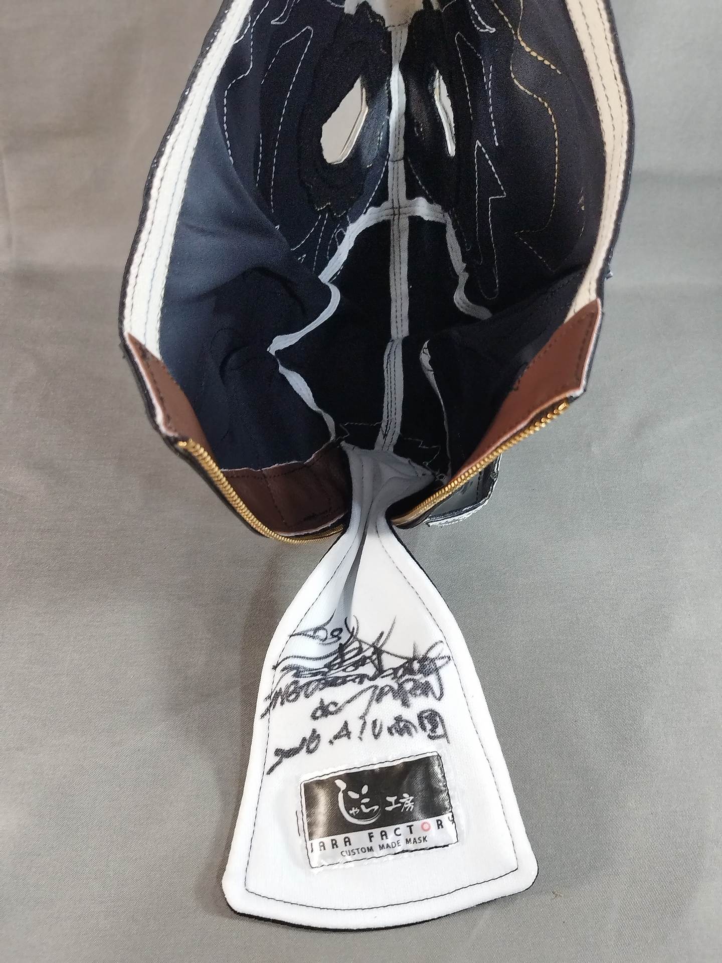 ★カラベラタイプ★ 本人使用サイン入り(2016.4.10 両国) 着用写真付 黒レオタード生地 白フチ&金特殊フチ&ピンク特殊フチ&赤フチ&金フチ&銀フチ ラインストーン装飾あり