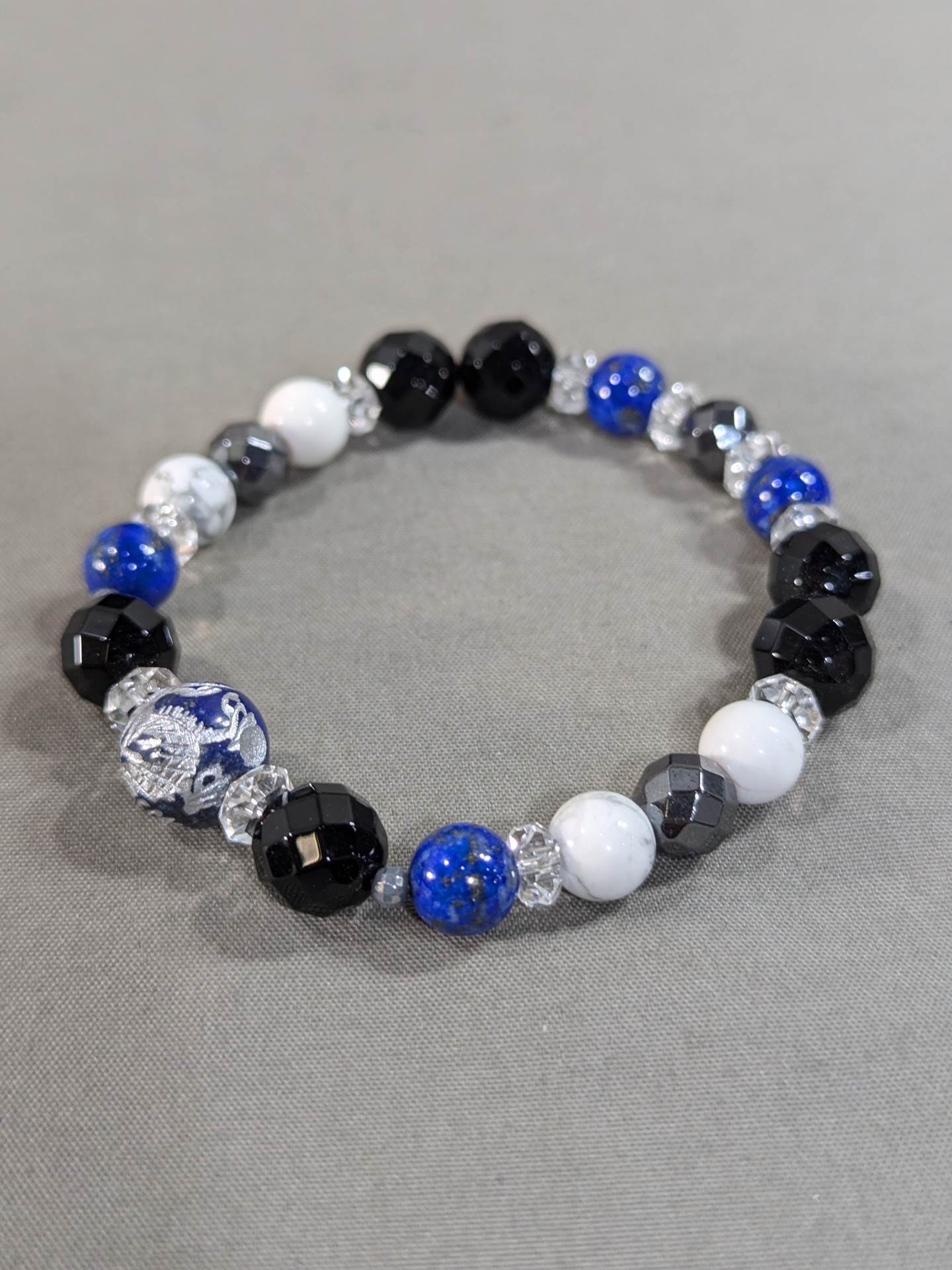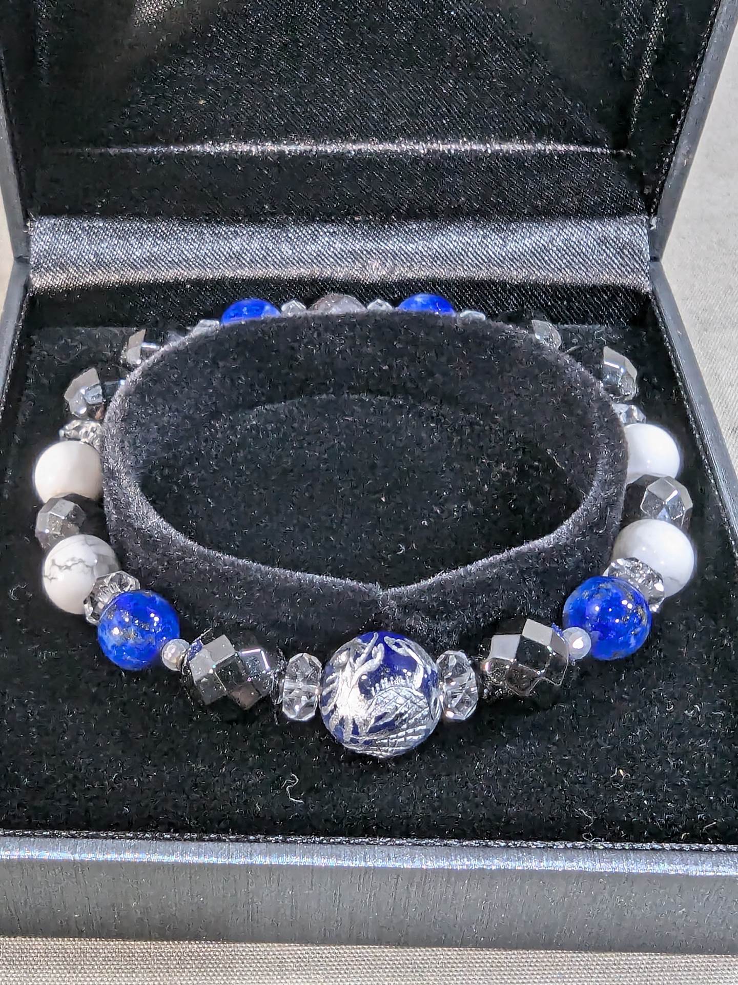 銀龍彫りラピスラズリ/64面カットオニキス/ラピスラズリ/ヘマタイト/ホワイトハウライト/ボタンカット水晶/シルバー925