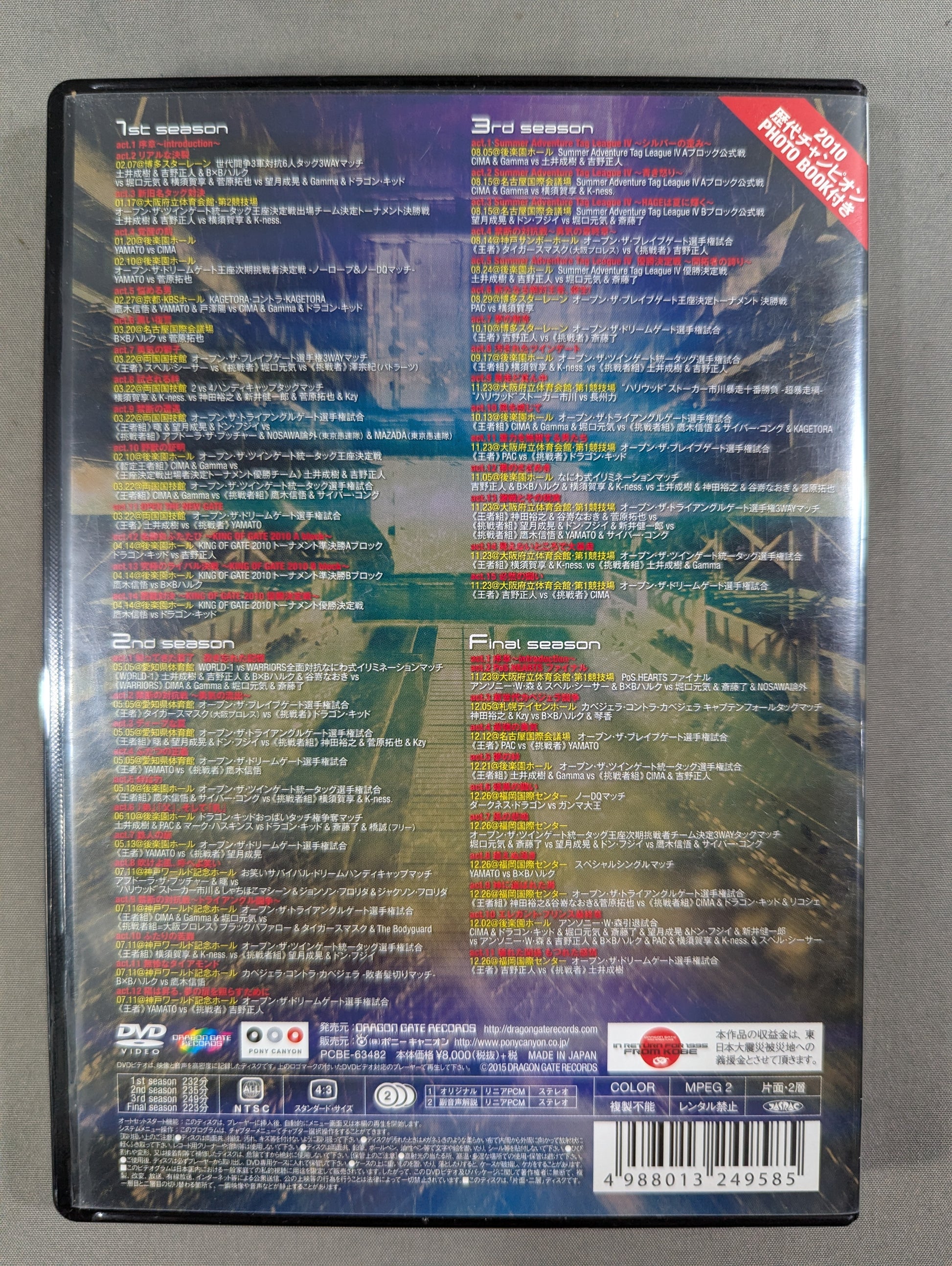 空前のメガヒットプロレスDVD「DRAGONGATE season」シリーズの2010年編全4タイトル(1st season〜final season)が、スペシャルプライスにて待望のBOX化!! 激動の2010年のドラゴンゲートマット情勢を克明に記録した映像作品に、永久保存版の豪華28Pブックレット(歴史年表+ツアースケジュール+歴代チャンピオンPHOTOブック)付き!! 色褪せないドラゴンゲートのヒストリーバイブルとも言える永久保存版DVD-BOXが登場!!