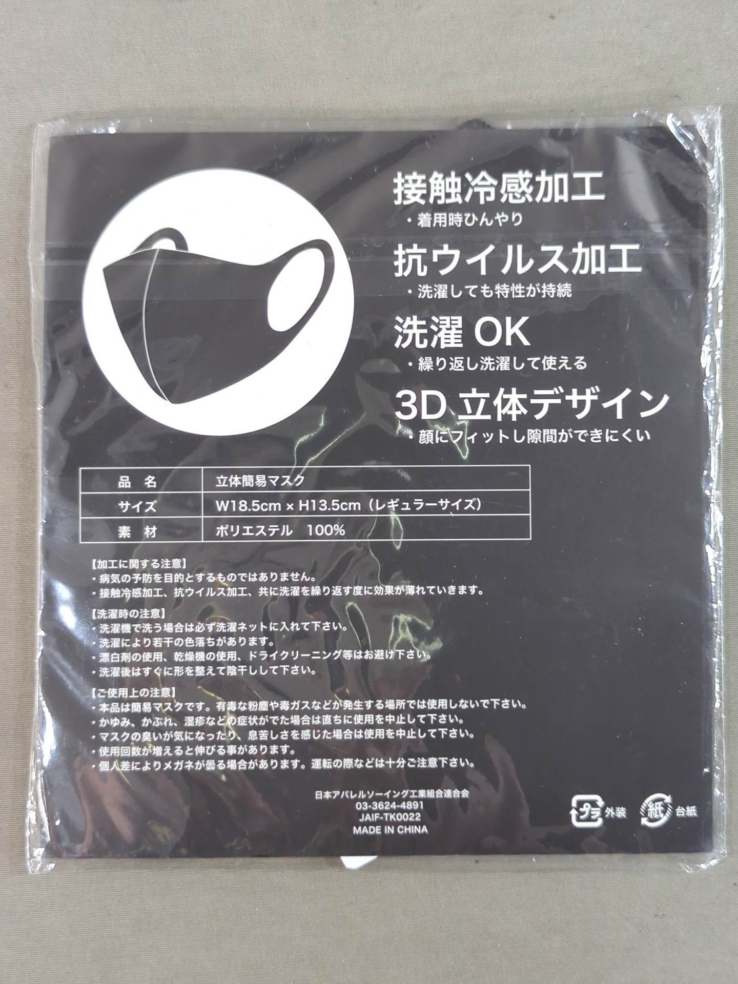 接触冷感加工・抗ウイルス加工・洗濯OK・3D立体デザイン