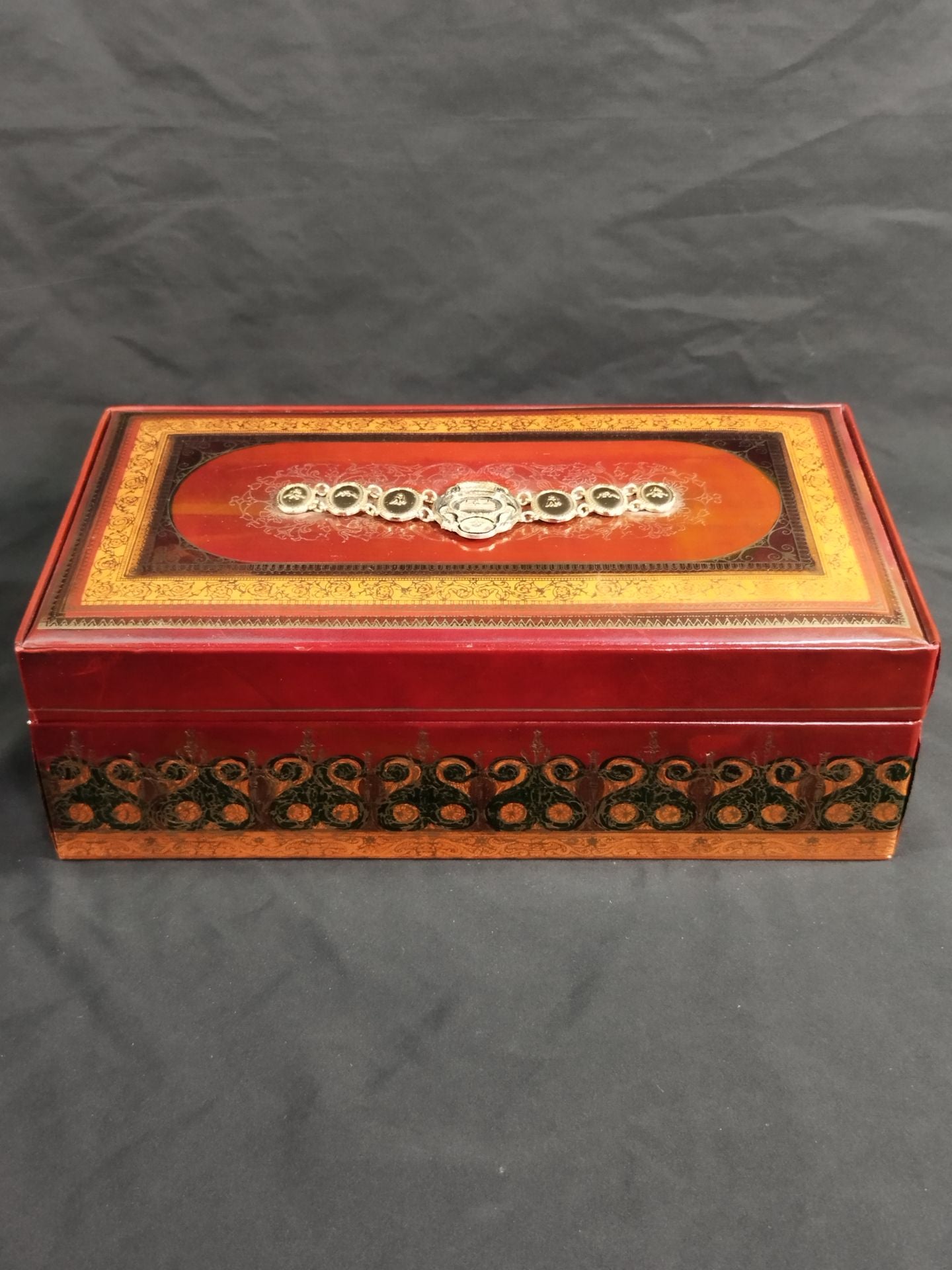 1963年 1963年6月5日、東京・ホテルオークラにて挙行 総経費5000万円!! 史上最大といわれた超豪華な結婚披露パーティーの出席者二千人に引出物として配られたもの 内側に金字で 「結婚記念 力道山 敬子1963.6.5」 フタの上部にインターナショナルのベルトの装飾