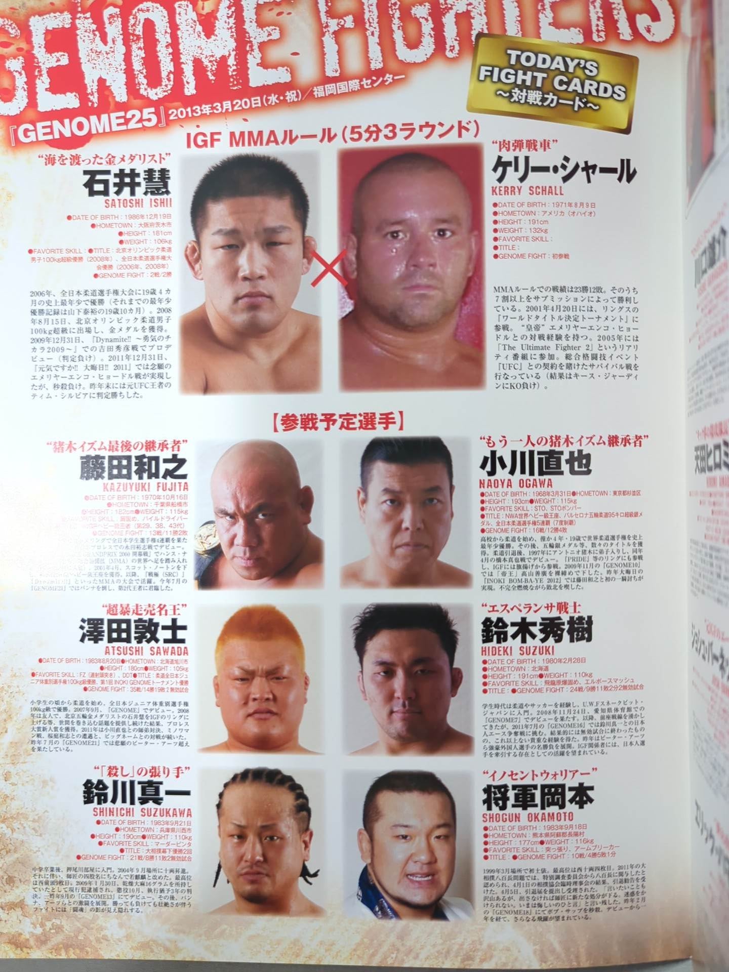 会場:福岡国際センター / 印刷対戦カード:石井慧vsケリー・シャール アントニオ猪木インタビュー掲載