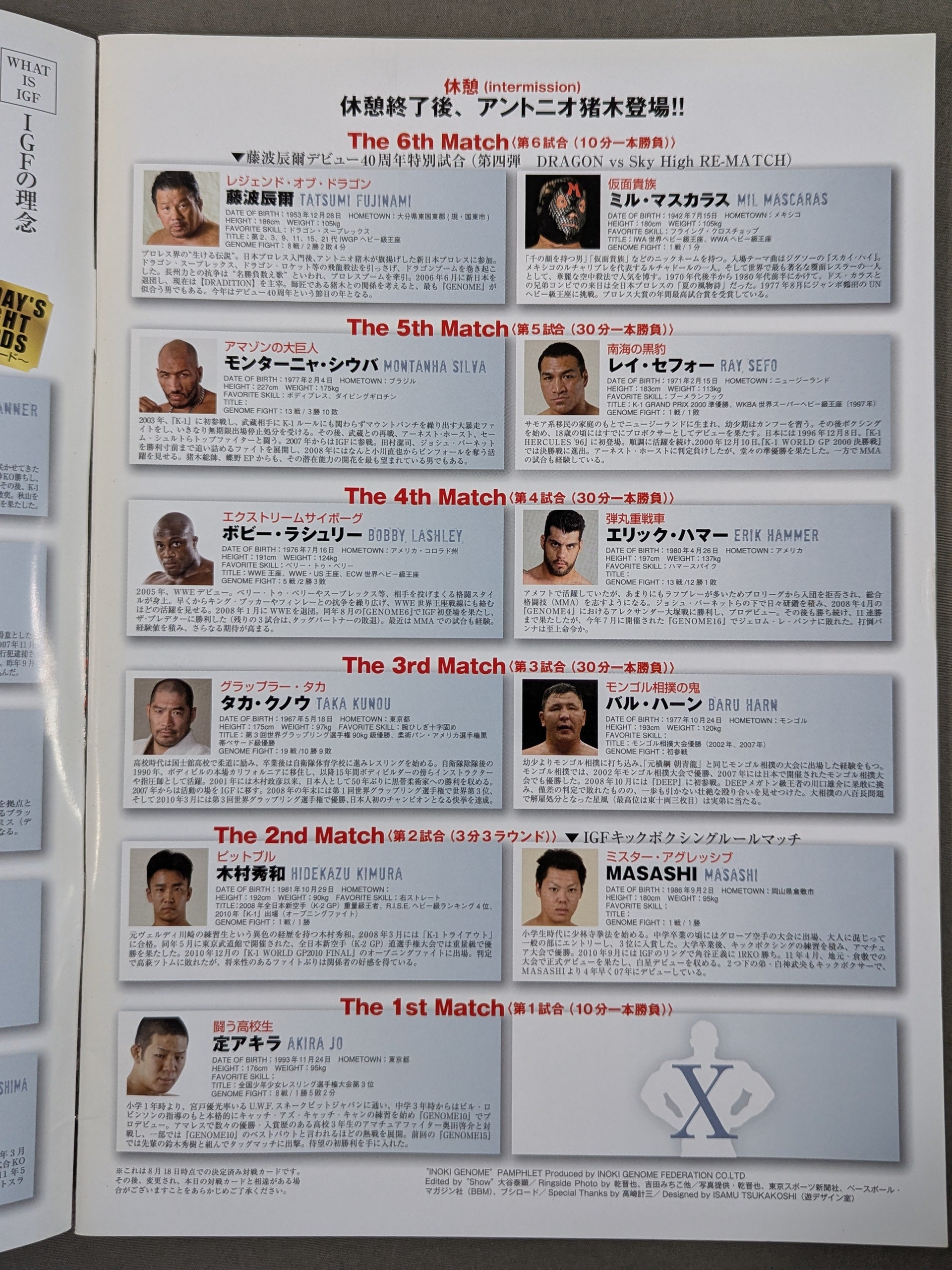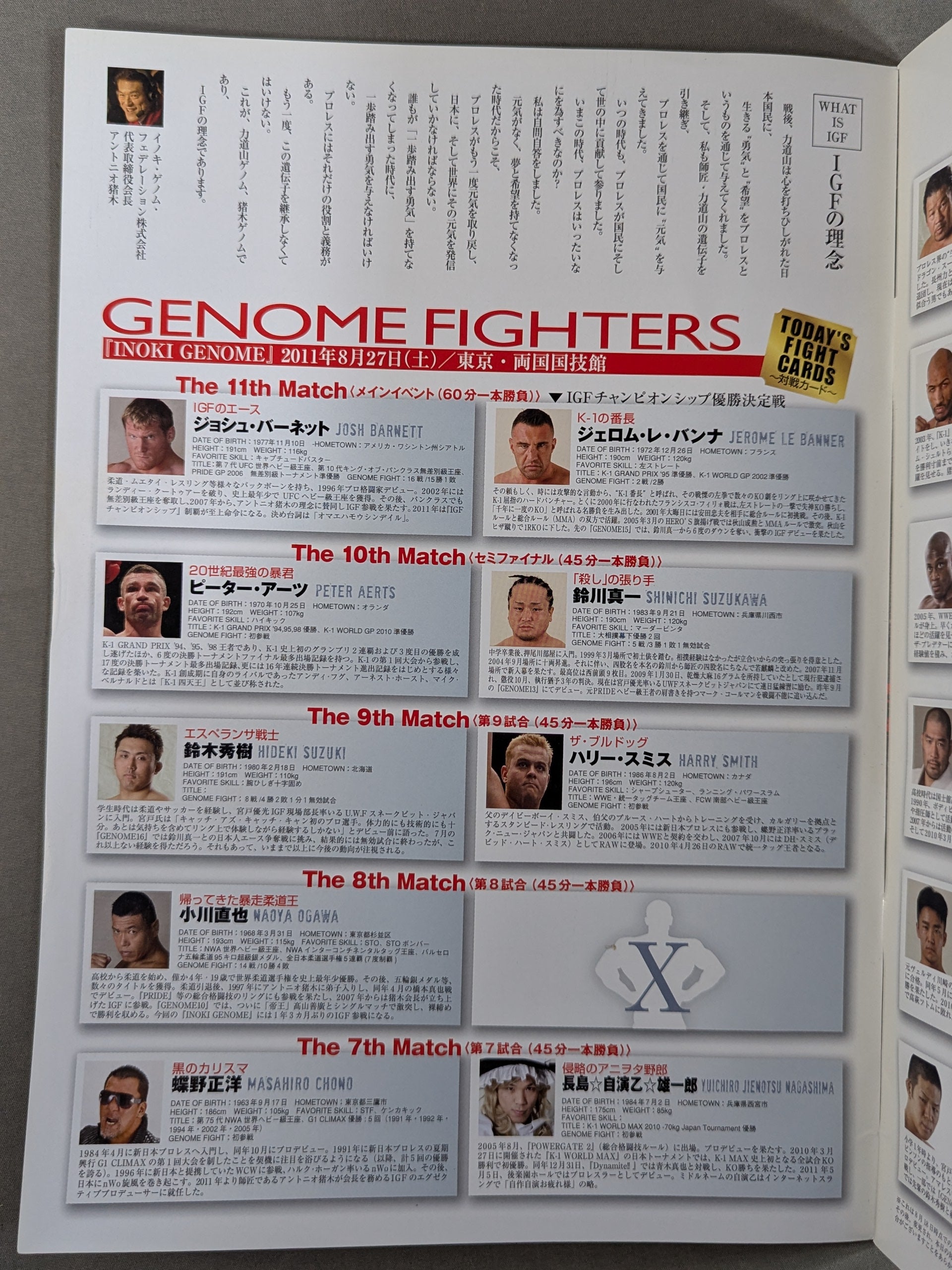 会場:両国国技館 / 印刷対戦カード:【IGFチャンピオンシップ優勝決定戦】ジョシュ・バーネットvsジェロム・レ・バンナ / ピーター・アーツvs鈴川真一 IGF / アントニオ猪木インタビュー掲載