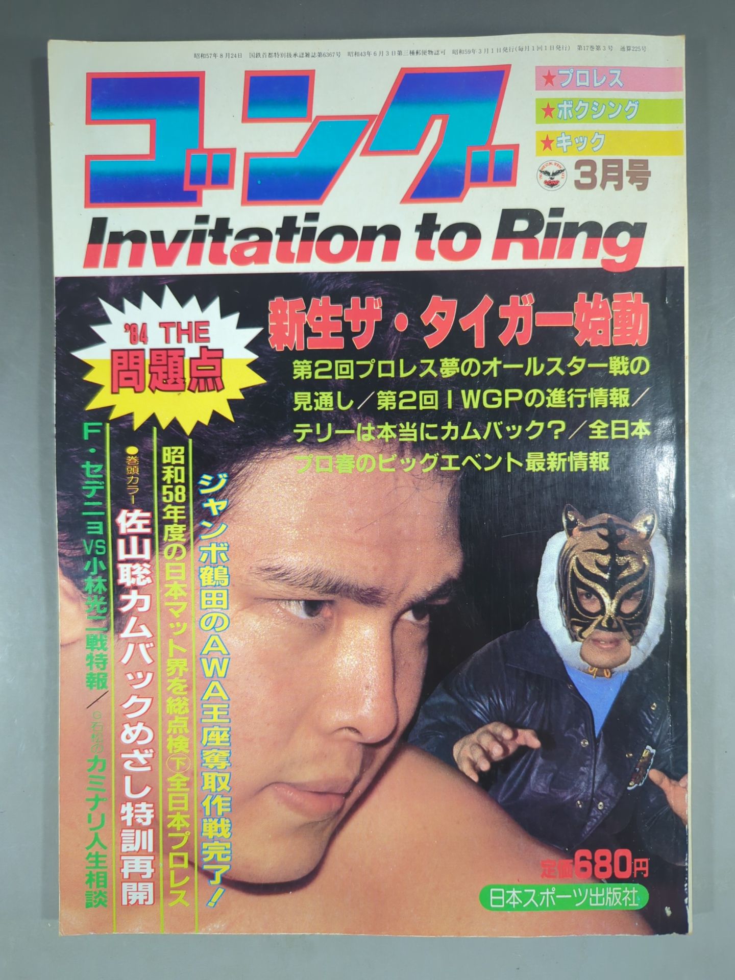 1984年 84 THE 問題点 ・新生ザ・タイガー始動 /第2回プロレス夢のオールスター戦の見通し/第2回IWGPの進行情報/テリーは本当にカムバック?/全日本春のビッグイベント最新情報 ・ジャンボ鶴田のAWA王座奪取作戦完了! ・昭和58年度の日本マット界を総点検㊦全日本プロレス ・巻頭カラー佐山聡カムバックめざし特訓再開 ・F・セデニョvs小林光二戦特報/G石松のカミナリ人生相談 / 【付録】〇特別付録(スター・レスラー・ポートレイト⑲デイビーボーイ・スミス) 表紙:佐山聡