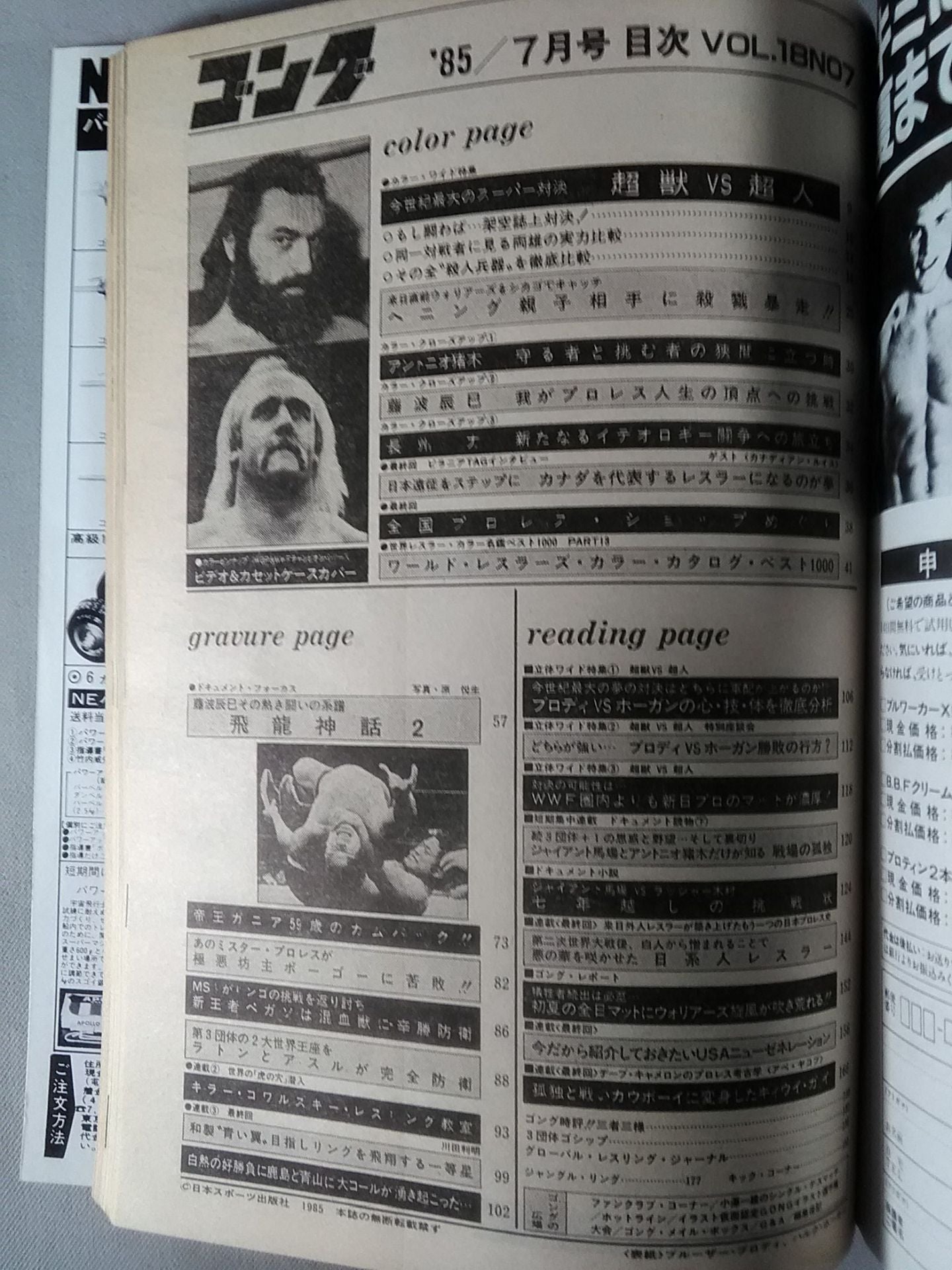 1985年 今世紀最大のスーパー対決 超獣vs超人もし闘わば… 来日直前のザ・ロード・ウォリアーズの暴走をキャッチ!! 4人のプロレス情報通がブロディvsホーガン戦を徹底大論争 特別グラフ 藤波辰巳の新たなる飛龍神話2 /【付録】◯オリジナル企画(ビデオ&カセットケースカバー) 〇別冊付録(世界レスラー・名鑑ベスト1000 Part13)