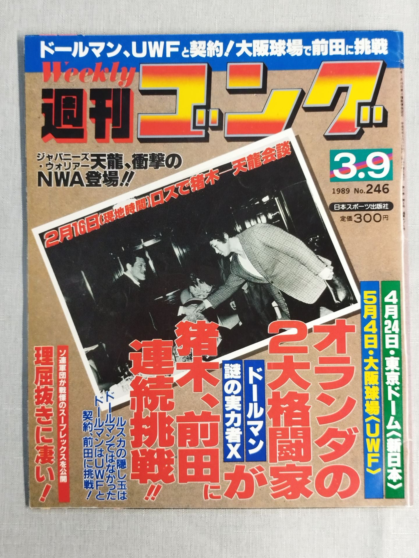 ドールマン、UWFと契約!大阪球場で前田に挑戦 / ピンナップ:ビッグバン・ベイダー、ブラッド・レイガンズ、クラッシャー・バンバンビガロ / 表紙:アントニオ猪木&天龍源一郎