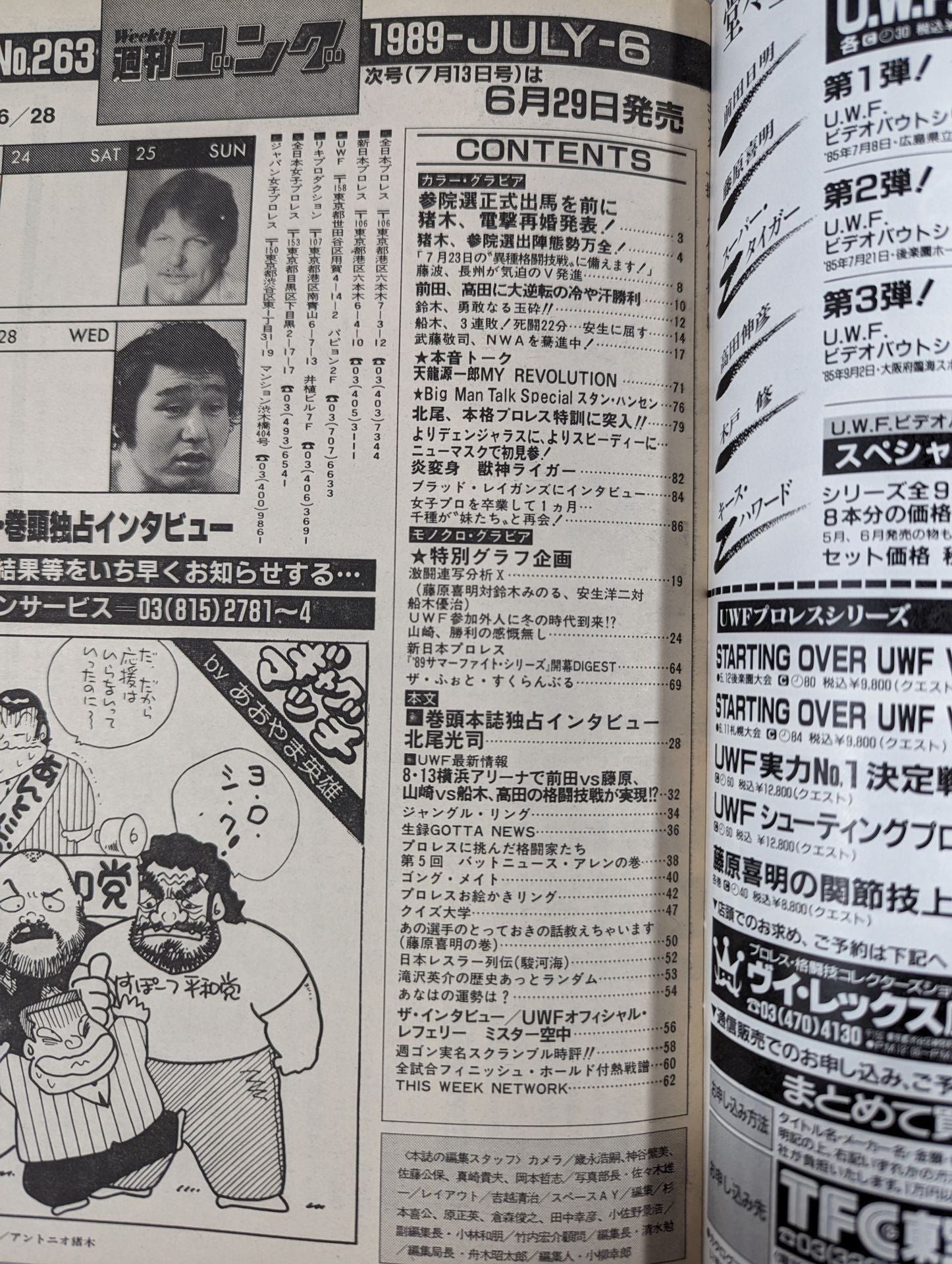 ここまできたら勝利あるのみ!!猪木、究極の異種格闘技戦へ向けて出陣態勢は万全! / ピンナップ:ブラッド・レイガンズ / 表紙:アントニオ猪木