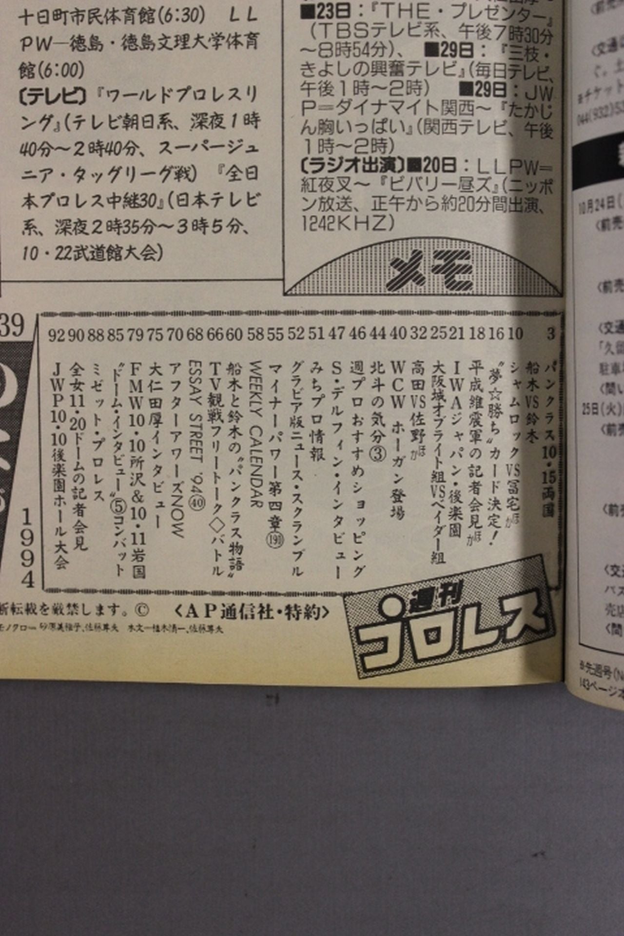 1994年 小さな涙のパンクラス物語 平成6年10月15日 両国国技館 / 27番目の団体、東京プロレスリング誕生 / 表紙:船木誠勝