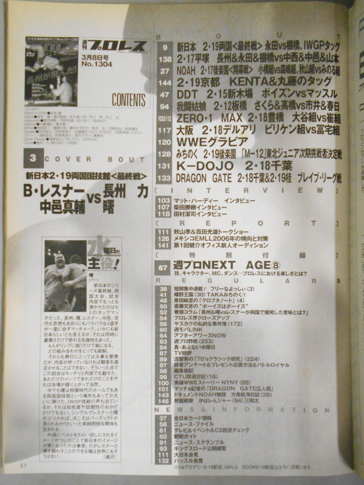 2006年 長州が飛んだ!新日本2.19両国国技館大会詳報/曙vsレスナード迫力!! / 表紙:長州