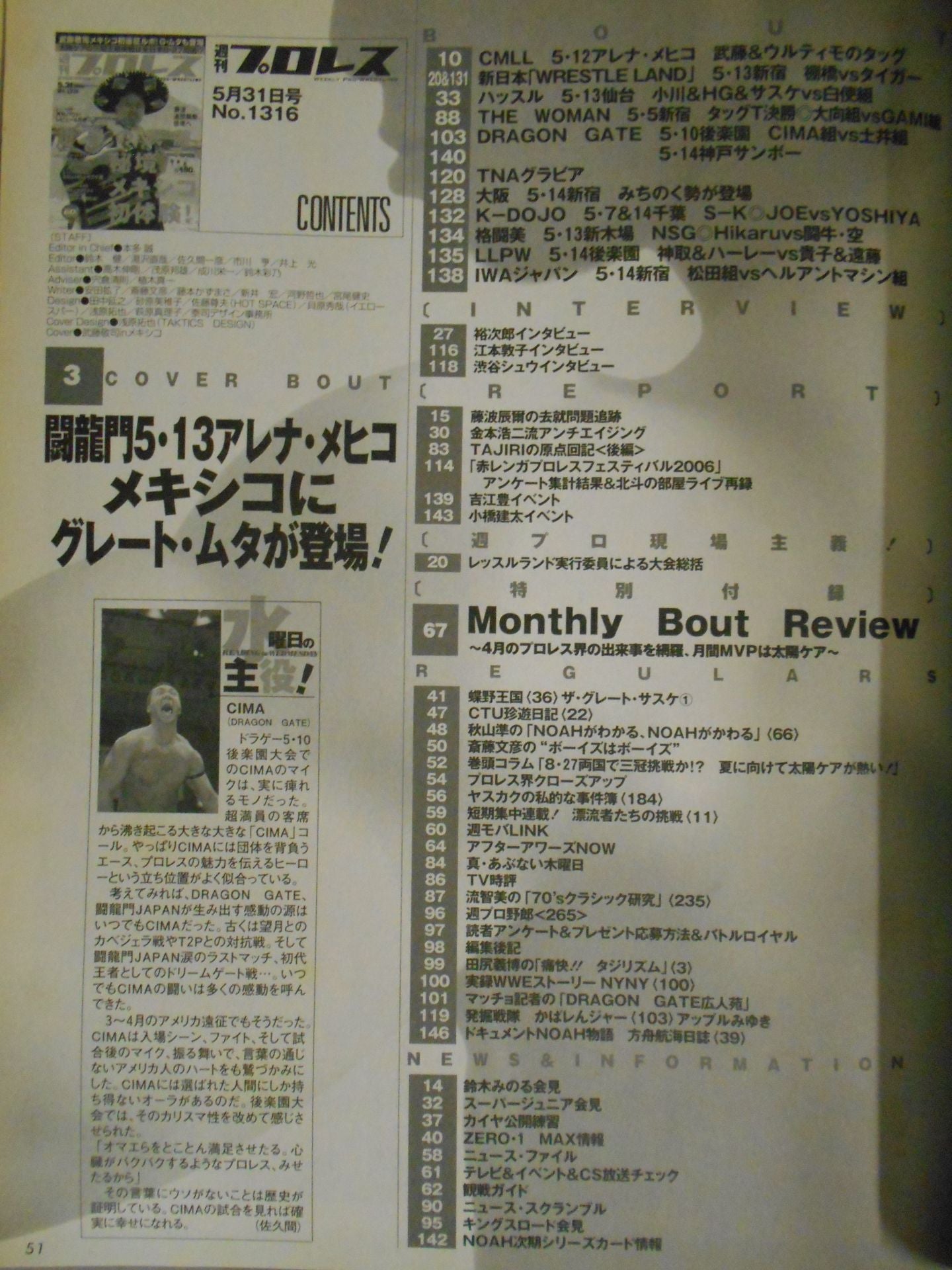 2006年 世界の武藤、秘境メキシコ初体験 ! /太陽ケアの三冠王座挑戦は全日本8.27両国 !? 表紙:武藤敬司