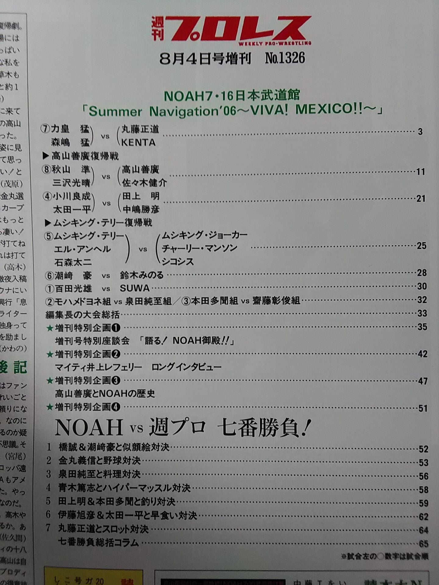 2006年 方舟新章 NOAH7.16日本武道館大会詳報号 表紙:丸藤、KENTA、森嶋