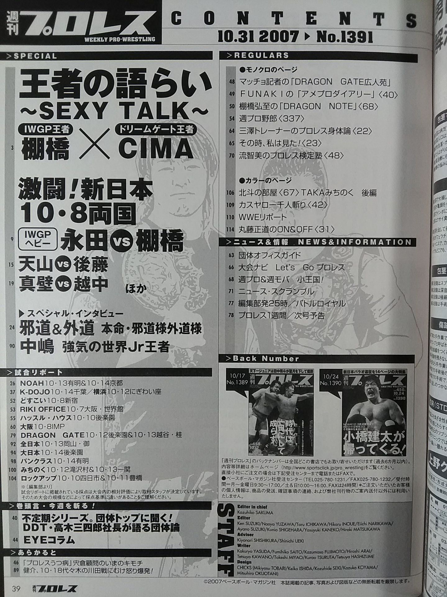 2007年 『王者の語らい』棚橋弘至&CIMAのチャンピオン対談実現/防衛戦に赤信号の中嶋勝彦を緊急キャッチ 表紙:棚橋、CIMA