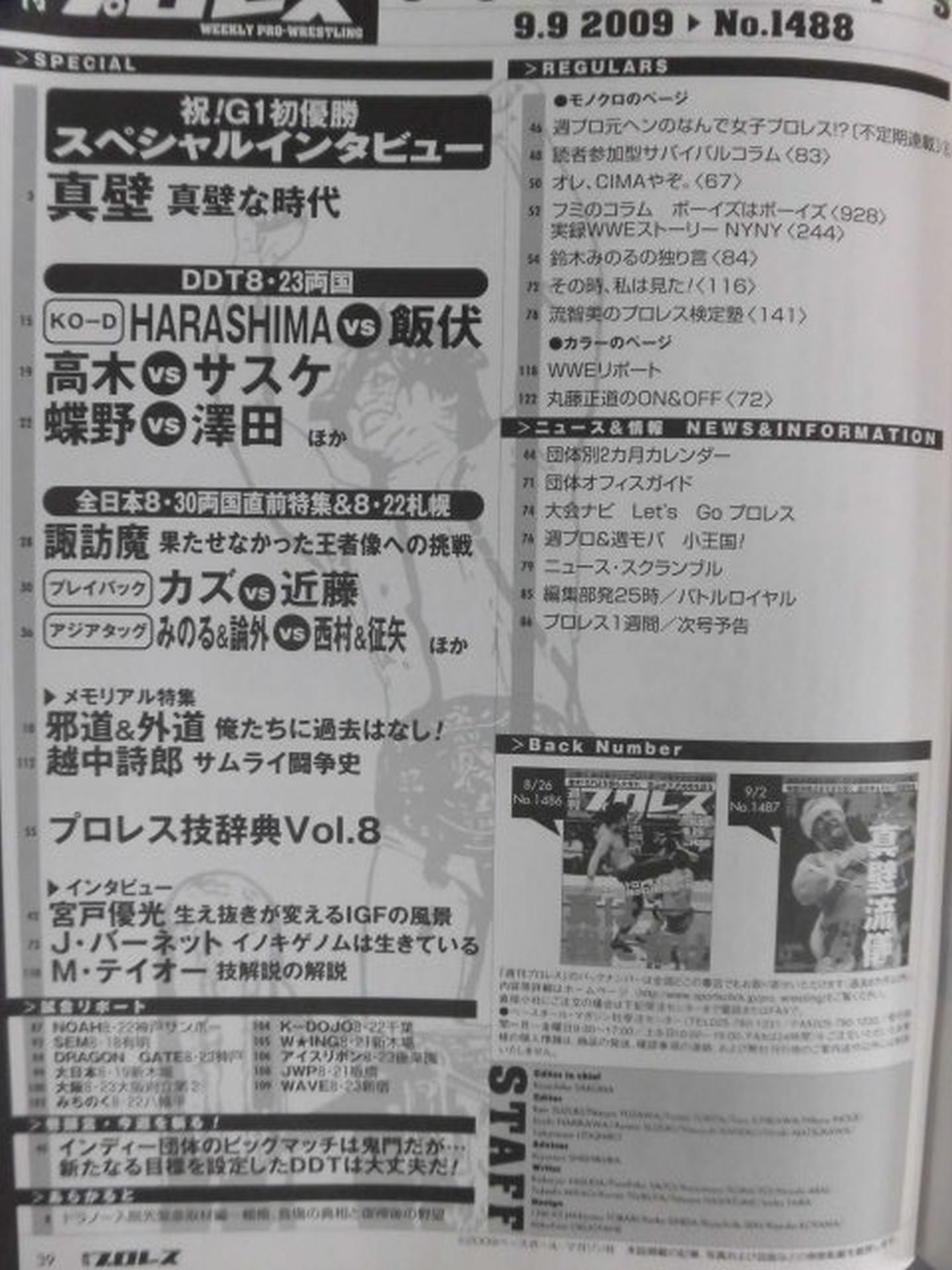 2009年 ドラマチックドリーム / 真壁にロングインタビュー / 越中詩郎30周年記念特集 表紙:飯伏幸太