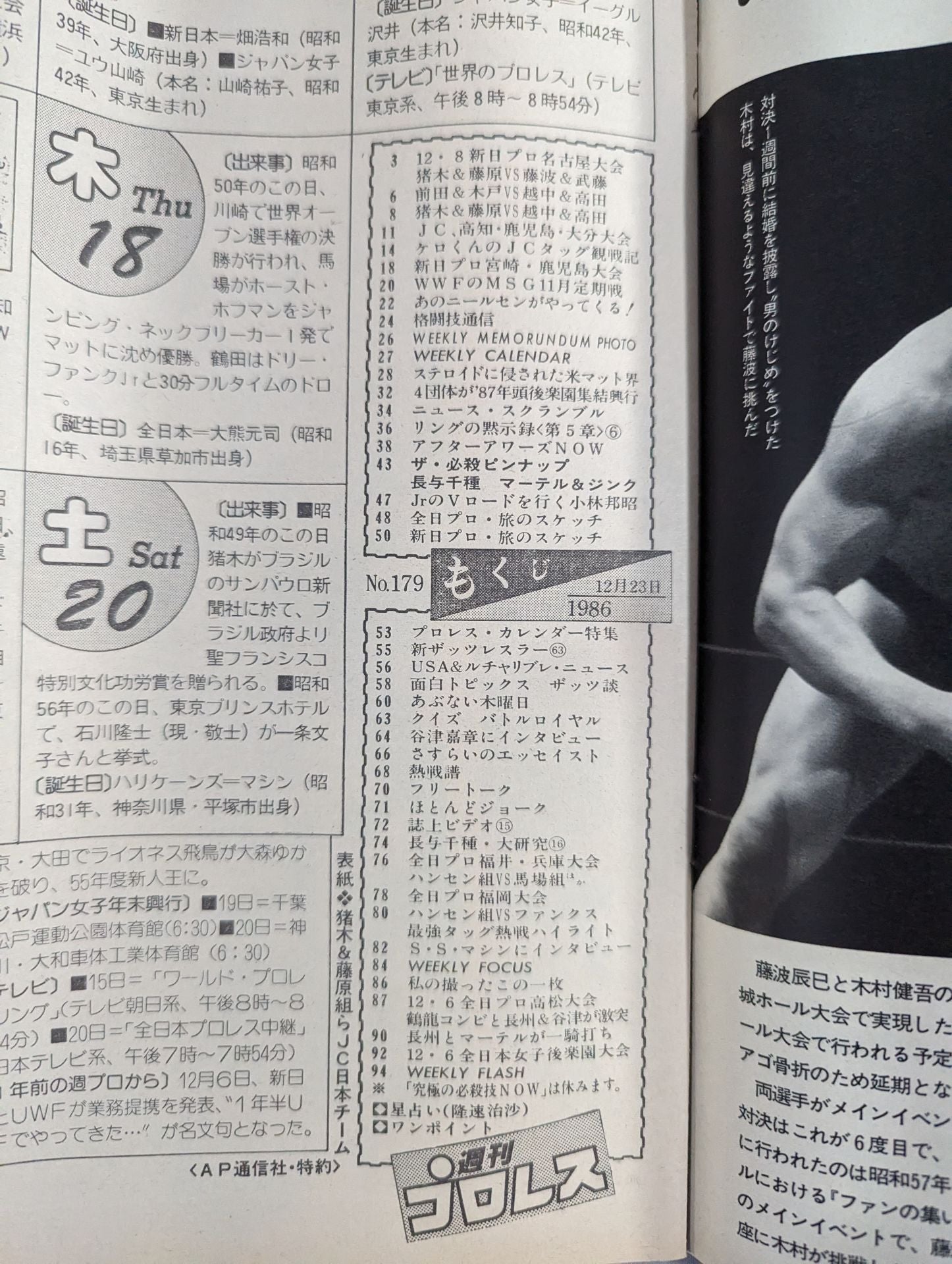 1986年 ジャッパン・カップ最後に笑ったのはどのチームだ! / 全米に恐怖のステロイド病 / ピンナップ:長与千種、リック・マーテル&トム・ジンク 表紙:武藤敬司、藤波辰巳、アントニオ猪木、藤原喜明