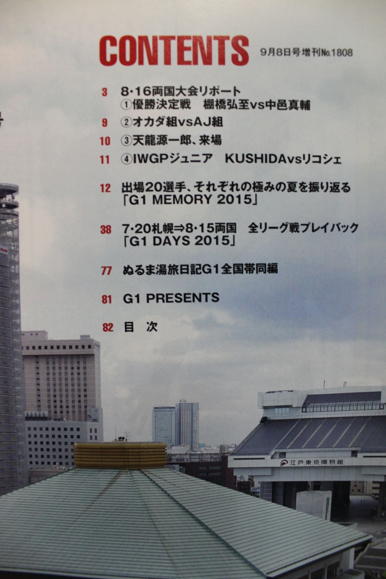 2015年 棚橋、中邑を下して8年ぶりV2! 7.20札幌→8.16両国 28日間全19大会全戦追跡 増刊特別企画:出場20選手それぞれの夏を振り返る「G1 MEMORY 2015」18大会の全リーグ戦プレイバック「G1 DAYS 2015」 / 表紙:棚橋弘至、中邑真輔