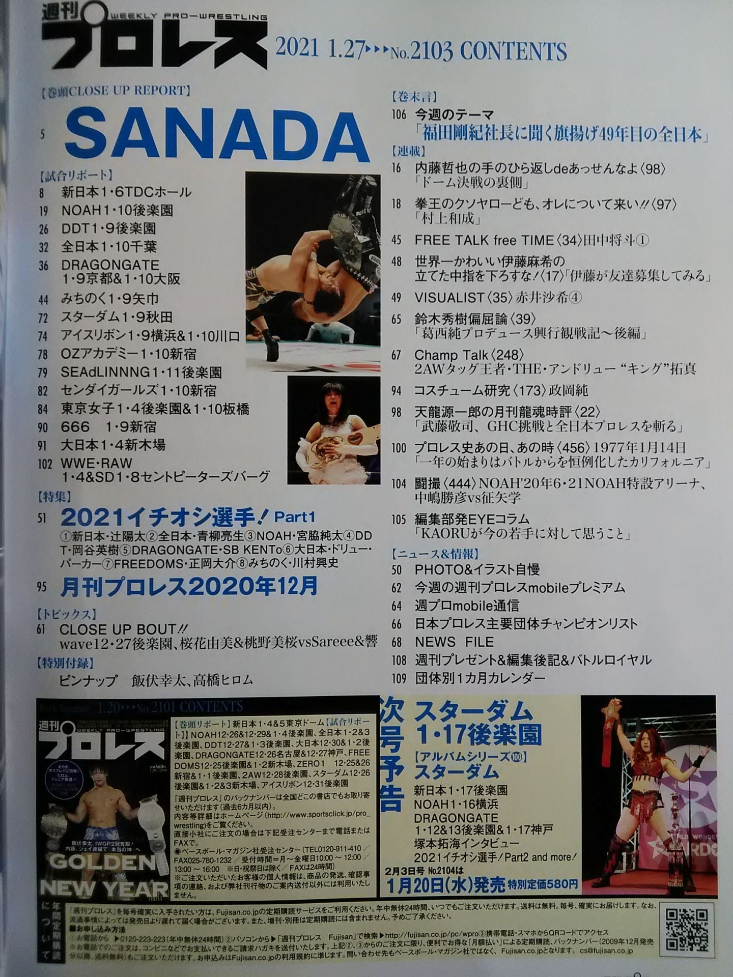 2021年 次のギフトはベルト姿を! / 新日本アフタードーム動き出す… SANADA、IWGP2冠王者・飯伏へ照準 表紙:SANADA