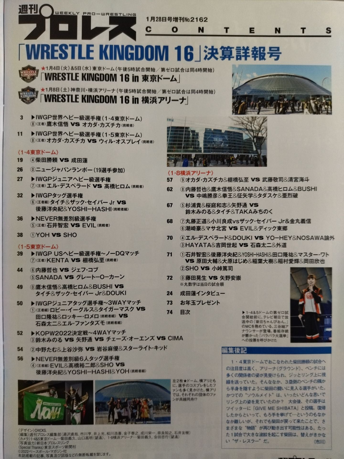 2022年 オカダ、最高峰のベルトとともに怒とうの3大会を締めくくる 担う王者 / 新日本がNOAHとの対抗戦を制す! 1.4&5東京ドーム&1.8横浜アリーナ大会を徹底リポート!! / 表紙:オカダ・カズチカ