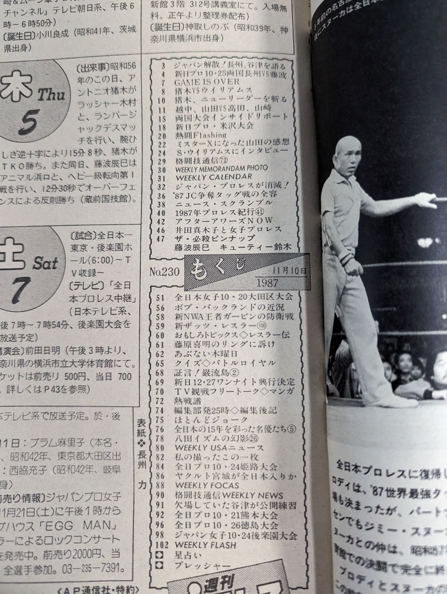 1987年 長州、藤波を破る!ジャパン・プロ消滅! もう、昔にには戻れない / ピンナップ:藤波辰巳vsアントニオ猪木/キューティー鈴木 表紙:長州力