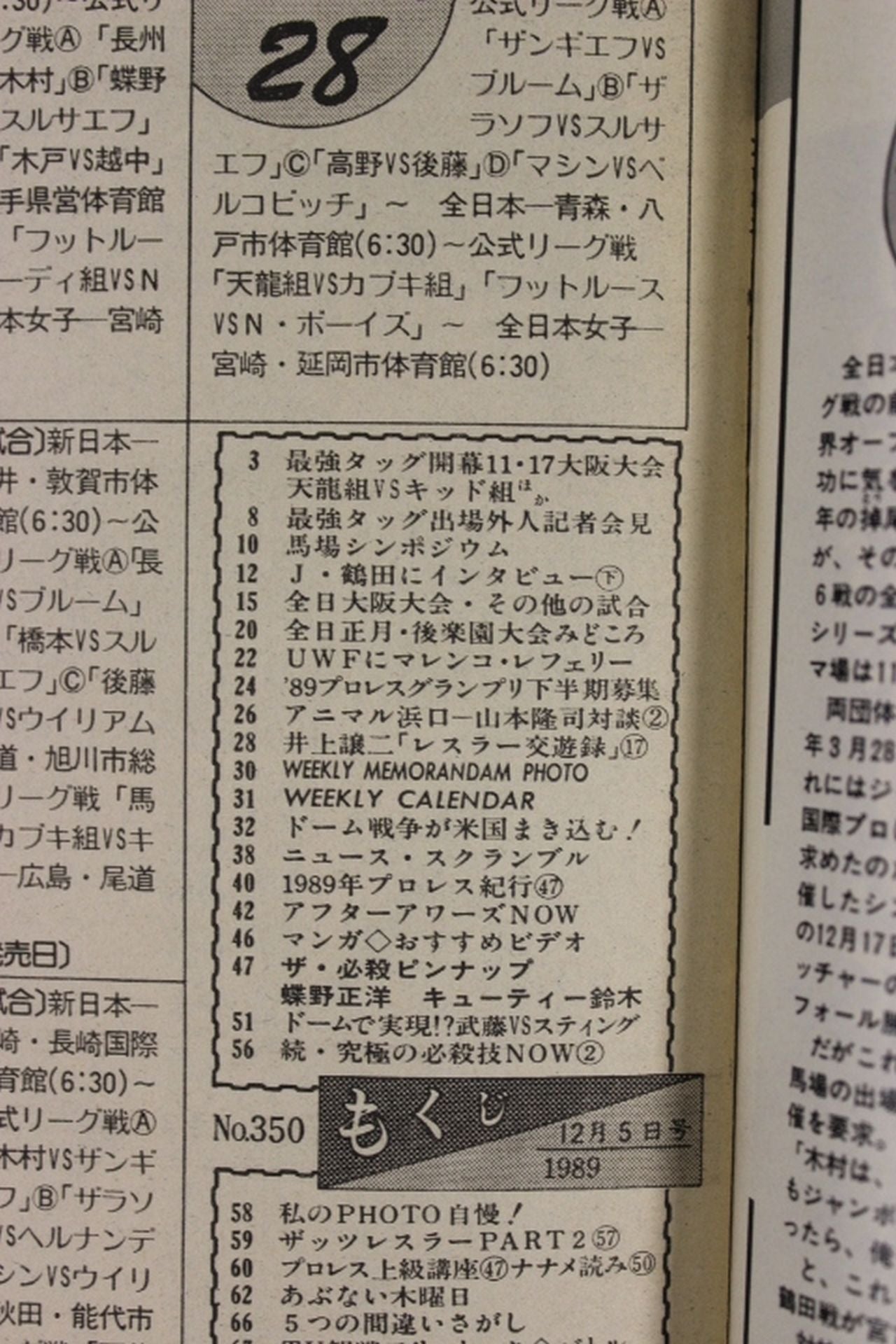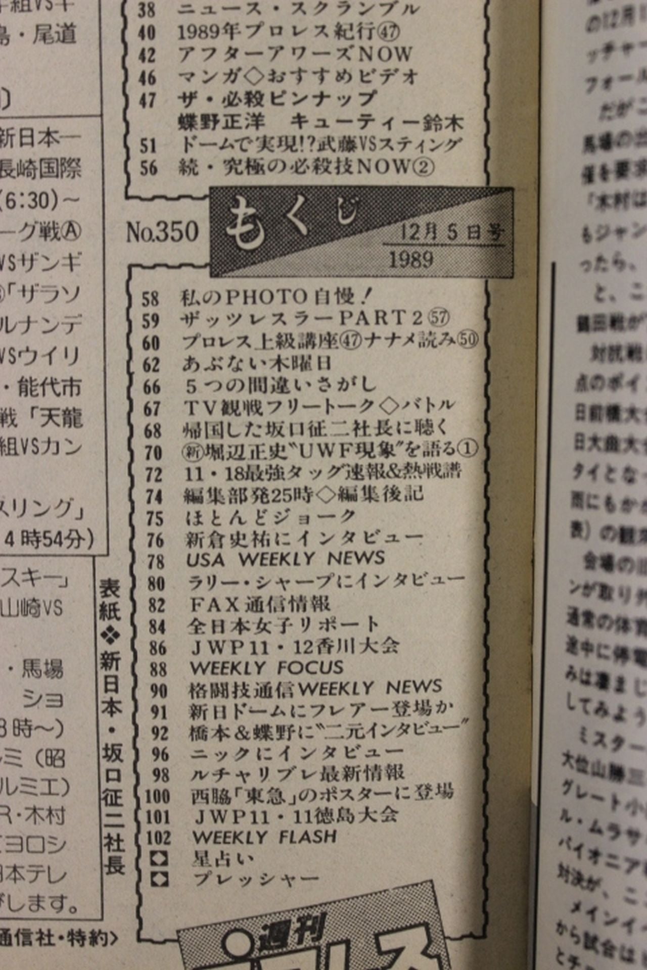 1989年 2・10東京ドームはNWAとAWA王者来日 4.13東京ドーム WWFは誰と手を組むか / ピンナップ:蝶野正洋、キューティー・鈴木 / 表紙:坂口征二