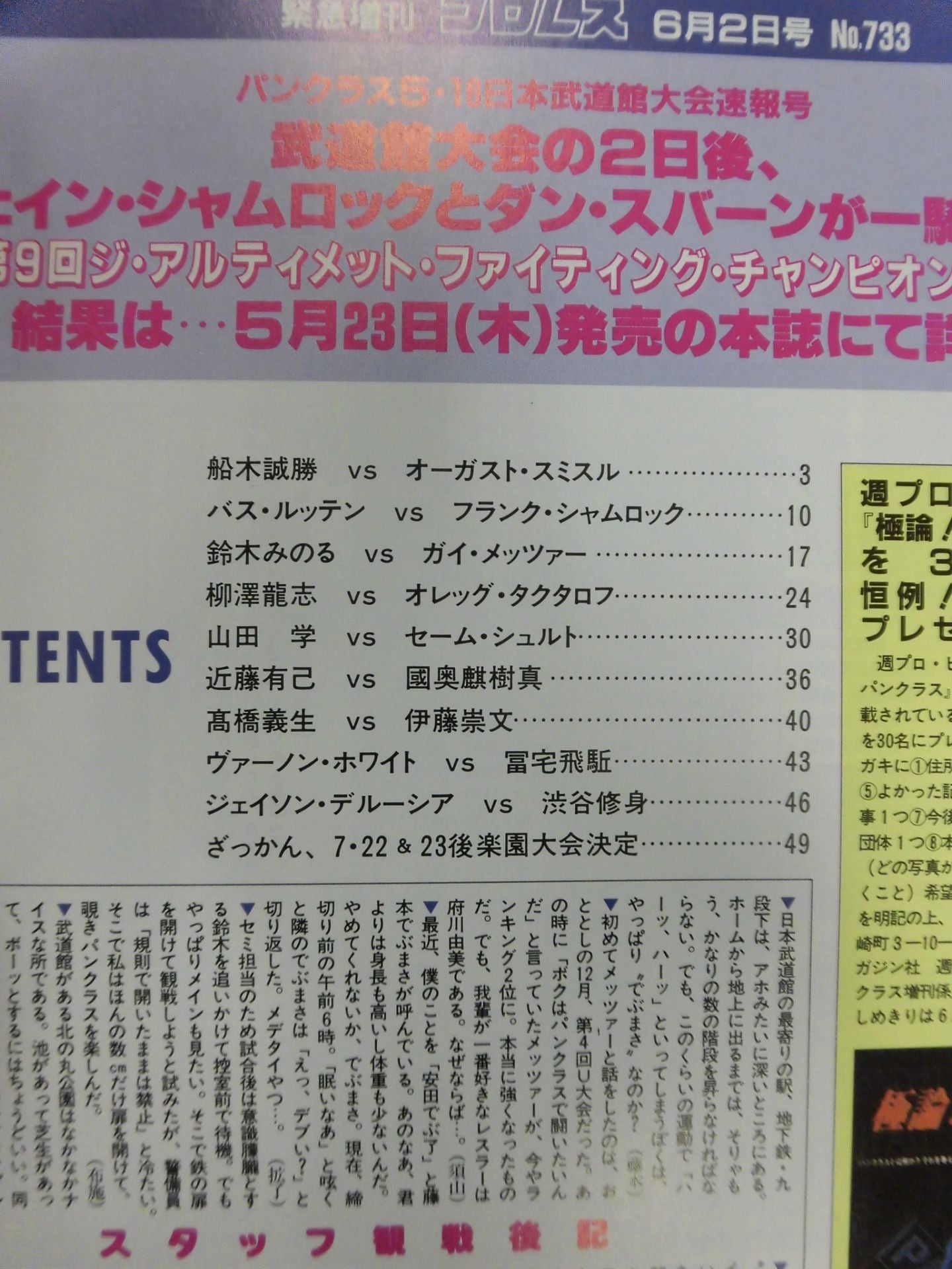 1996年 パンクラス5・16日本武道館大会速報号 / 表紙:船木誠勝