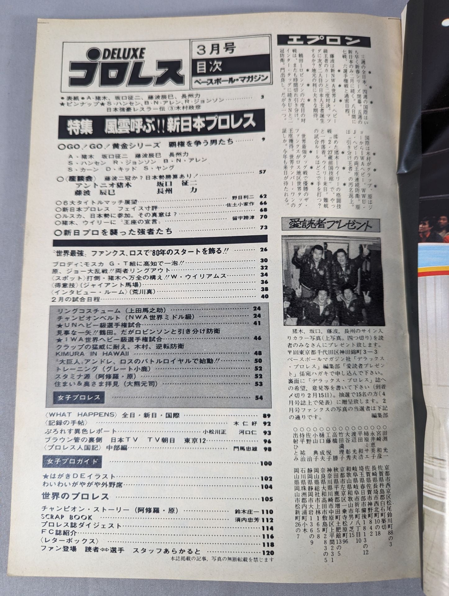 1980年 風雲呼ぶ!!新日本プロレス /【付録】×ピンナップ(表ハンセン、B・N・アレン、R・ジョンソン/裏木村政彦) 表紙:アントニオ猪木、坂口征二、藤波辰巳、長州力