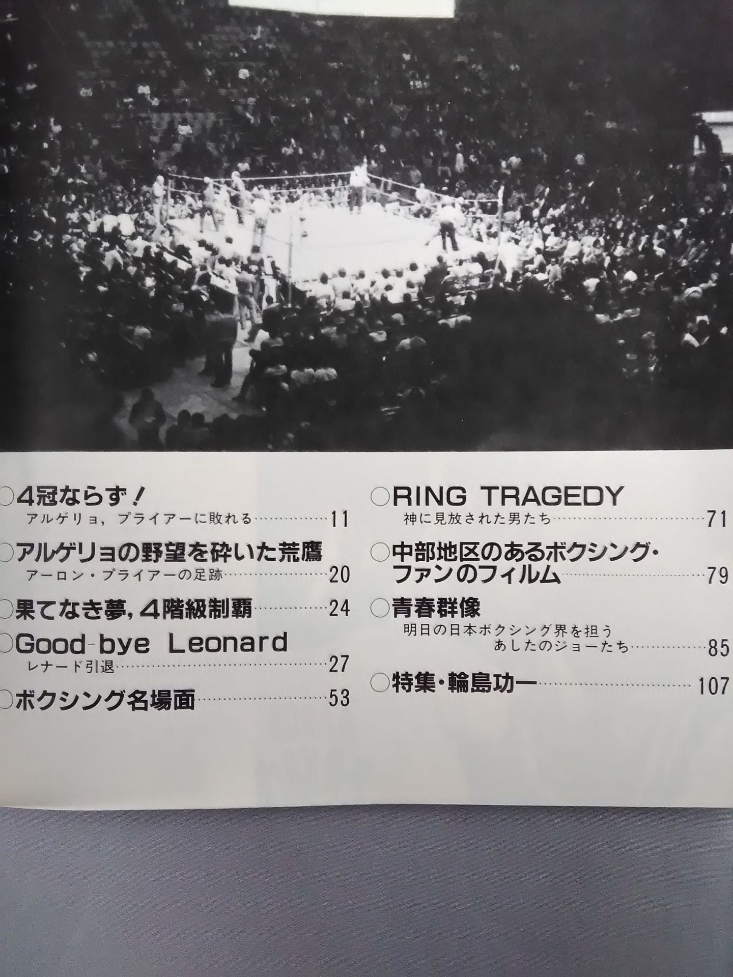 1982年 特集:輪島功一 ◯アルゲリョ、4冠ならず! ブライアーvsアルゲリョ戦詳報 ◯Good-byeレナード シュガー・レイ・レナード引退 ◯青春群像、あしたのジョーたち 日本ボクシング界の明日を担う男たち 表紙:シュガー・レイ・レナード、アーロン・ブライアーvsアレクシス・アルゲリョ、輪島功一vs柳済斗