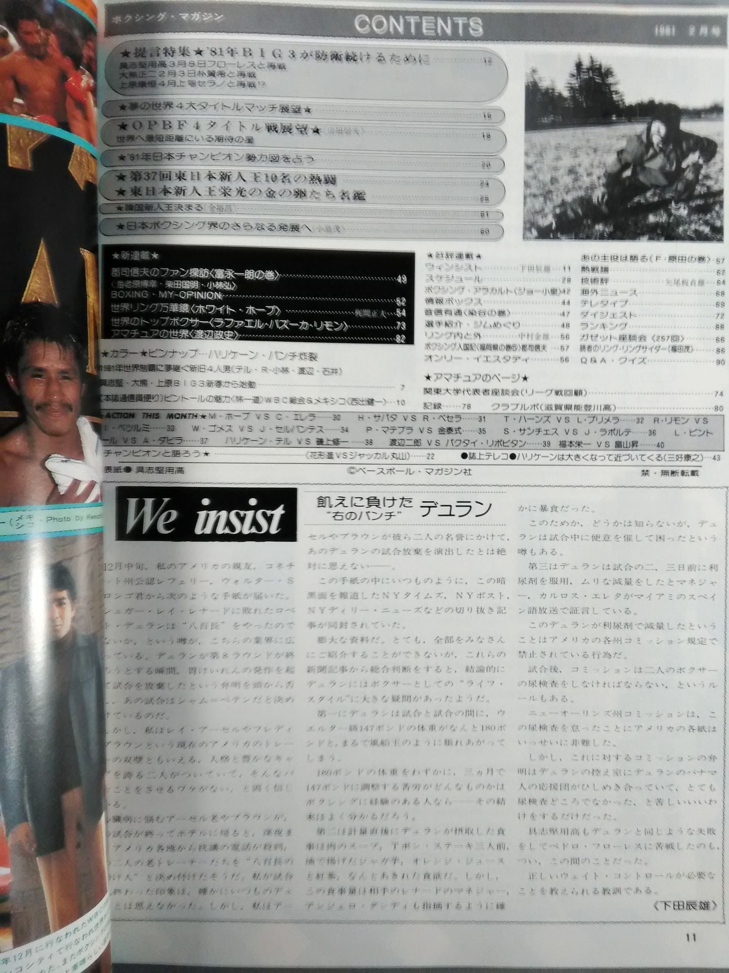 1981年 81年BIG3が防衛続けるために...具志堅用高3月8日フローレンスと再戦 大熊正二2月3日朴賛希と再戦 上原康恒4月上旬セラノと再戦?! / 【付録】◯ピンナップ(ハリケーンパンチ炸裂/1981年世界制覇に夢継ぐ新旧4人男) 表紙:具志堅用高