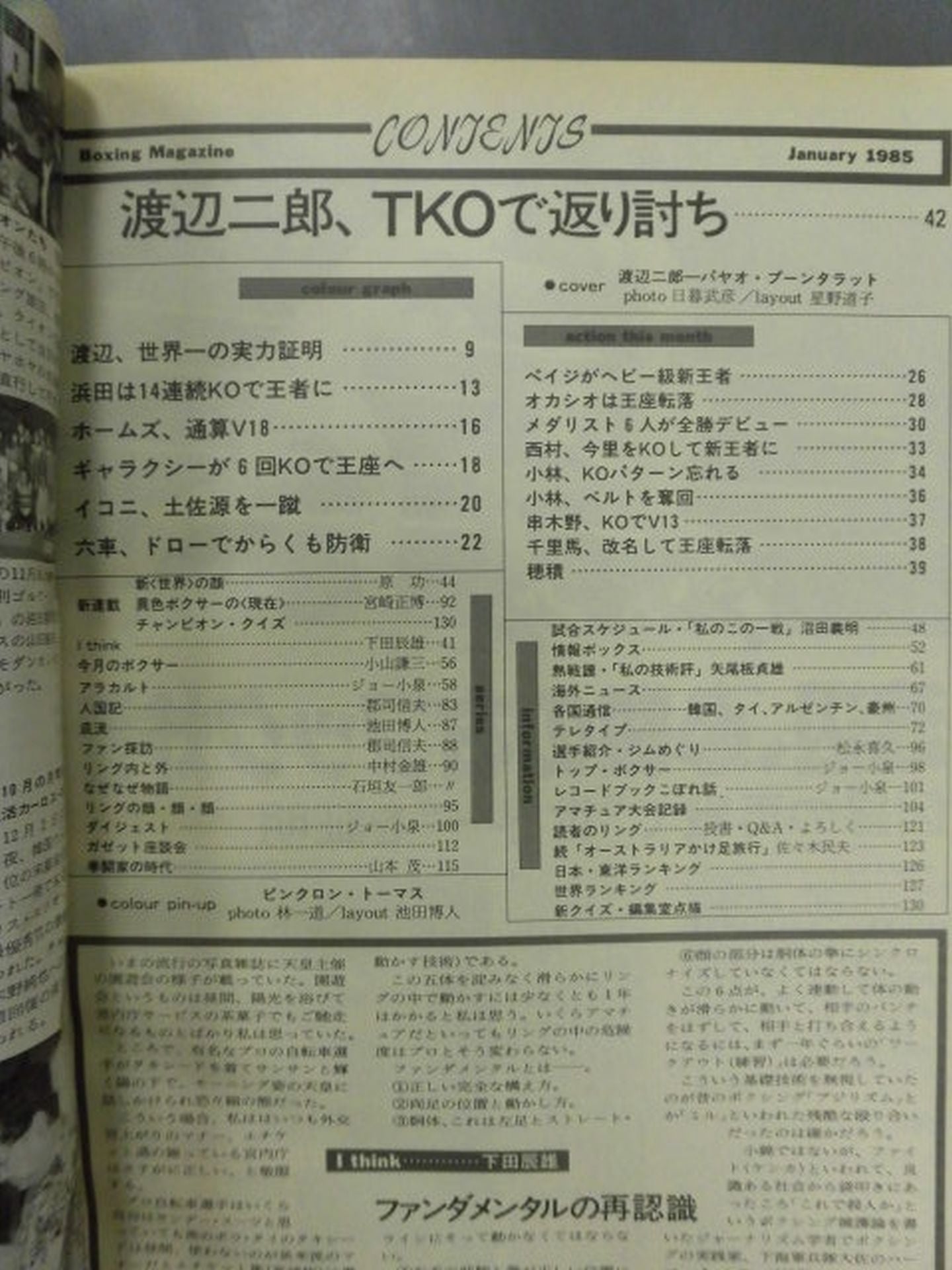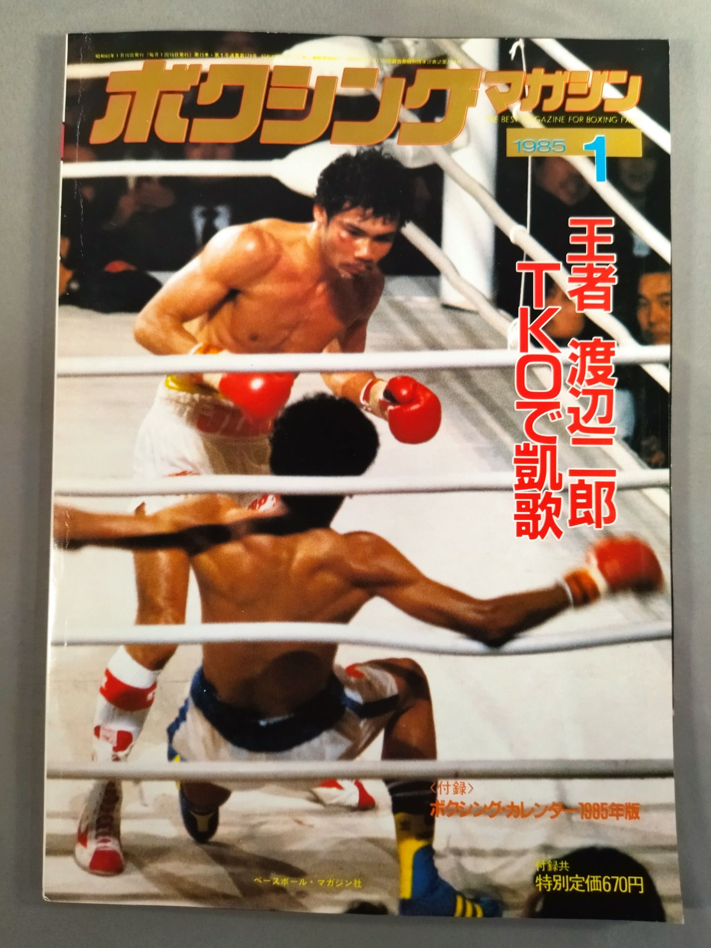 1985年 王者渡辺二郎TKOで凱歌 / 【付録】○ピンナップ(ピンクロン・トーマス) ×ボクシング・カレンダー1985年版(マービン・ハグラー、トミー・ハーンズ) 表紙:渡辺二郎
