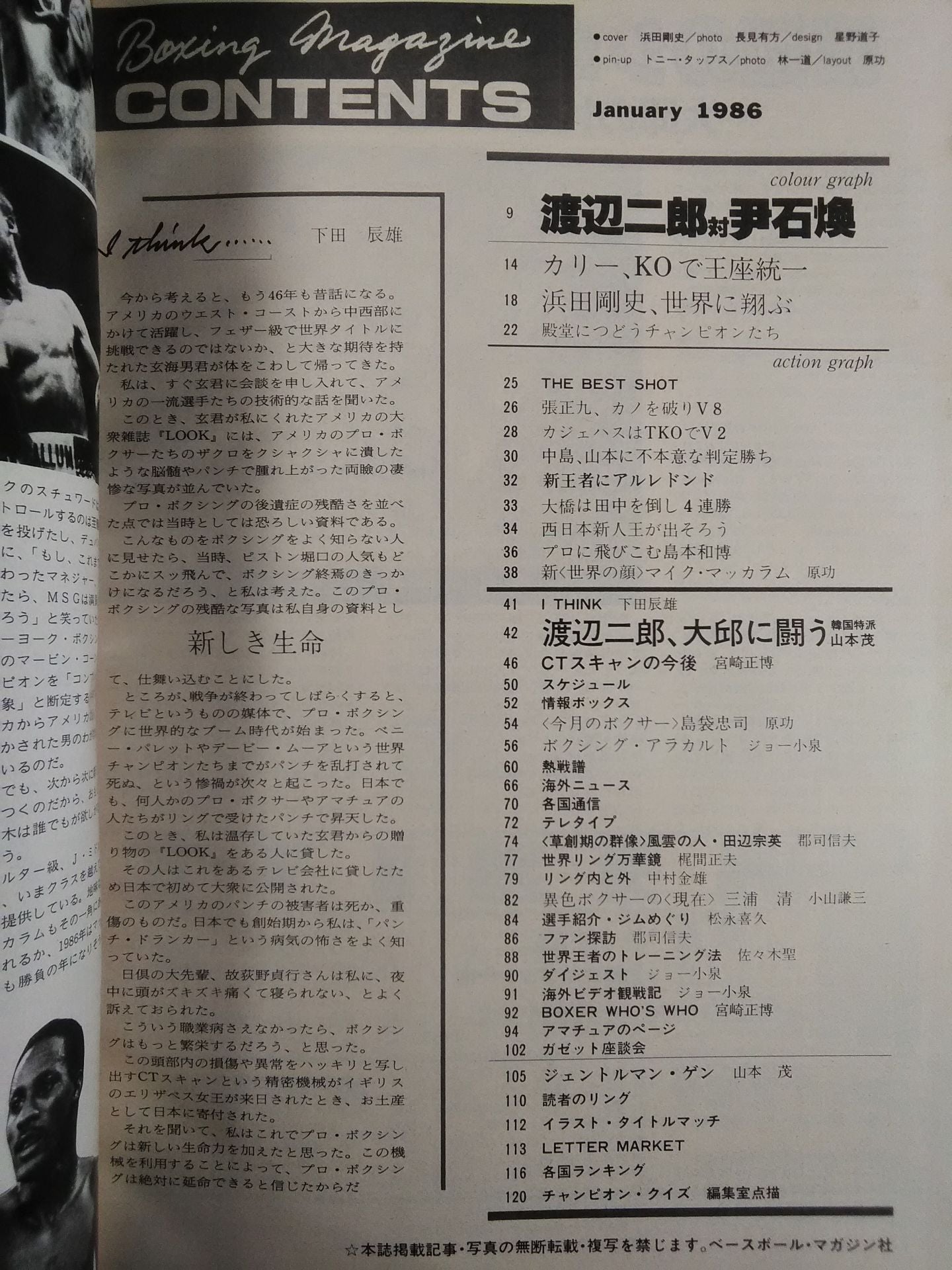 1986年 世界へ翔ぶ浜田剛史 渡辺二郎、大邱に闘う カリー対マクローリー / 【付録】◯ピンナップ(トニー・タップス) 表紙:浜田剛史