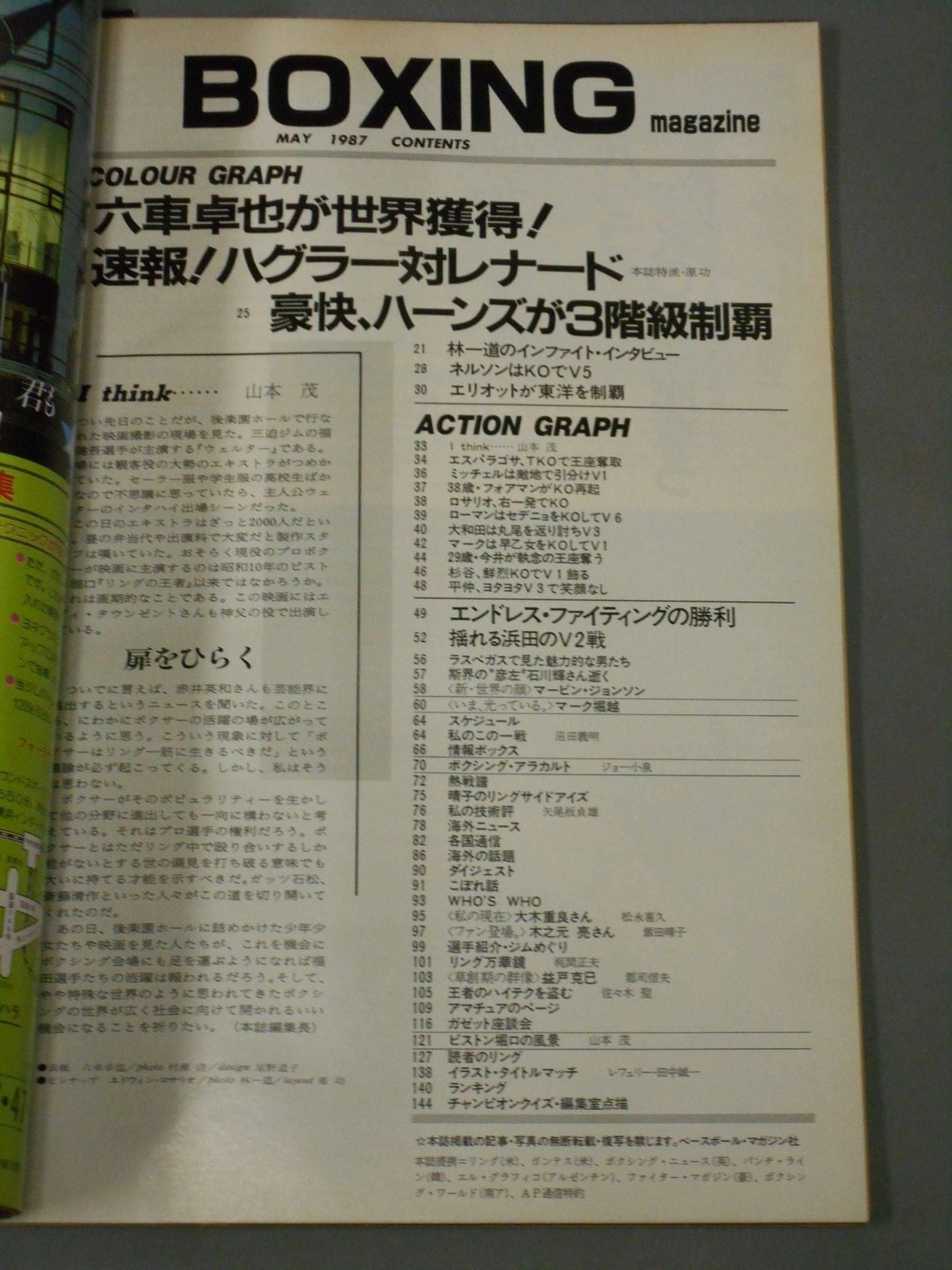 1987年 六車が世界獲得! / 速報!ハグラー対レナード / ◯ピンナップ(エドウィン・ロサリオ) 表紙:六車卓也