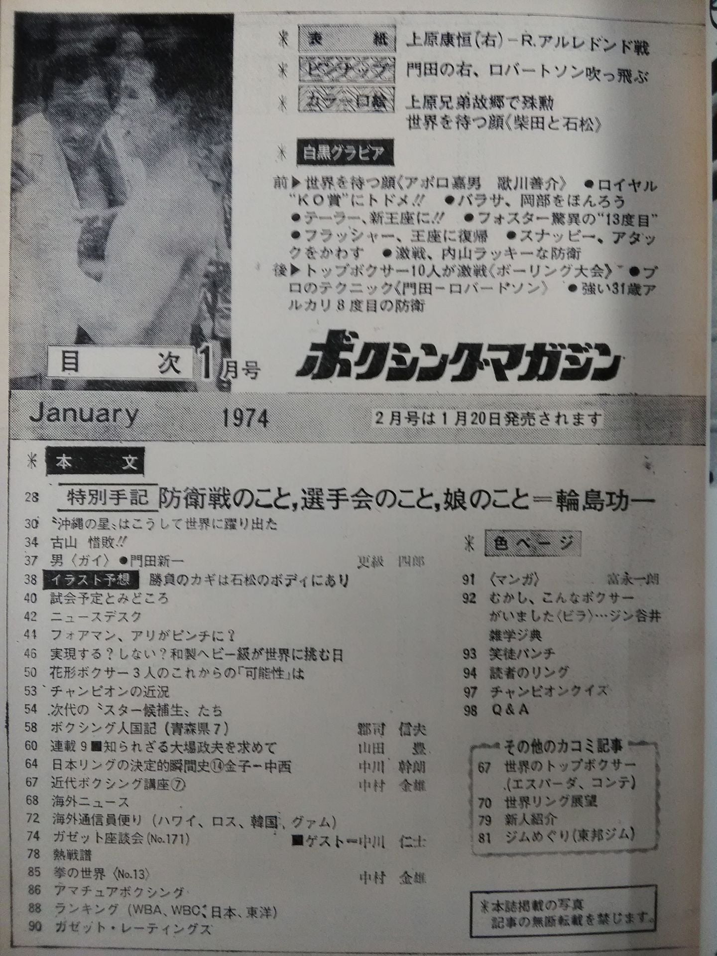 1974年 踊り出た”沖縄の星”上原 世界王者破 / 【付録】◯ピンナップ(門田の右、ロバートソン吹っ飛ぶ) 表紙:上原康恒-R.アルレドンド戦