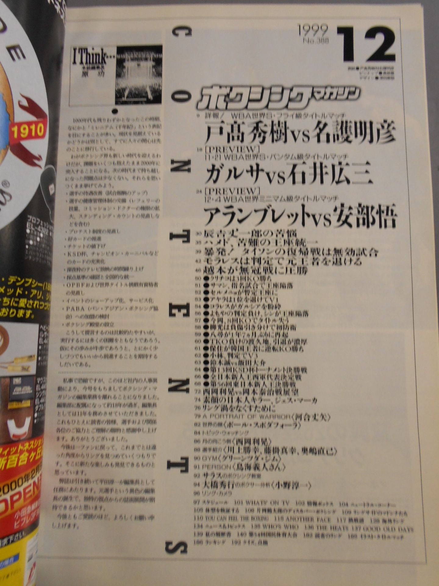 1999年 戸高が日本人対決を制す!/タイソン、復帰戦は無効試合 / ピンナップ:真部豊 / 表紙:戸高、名護