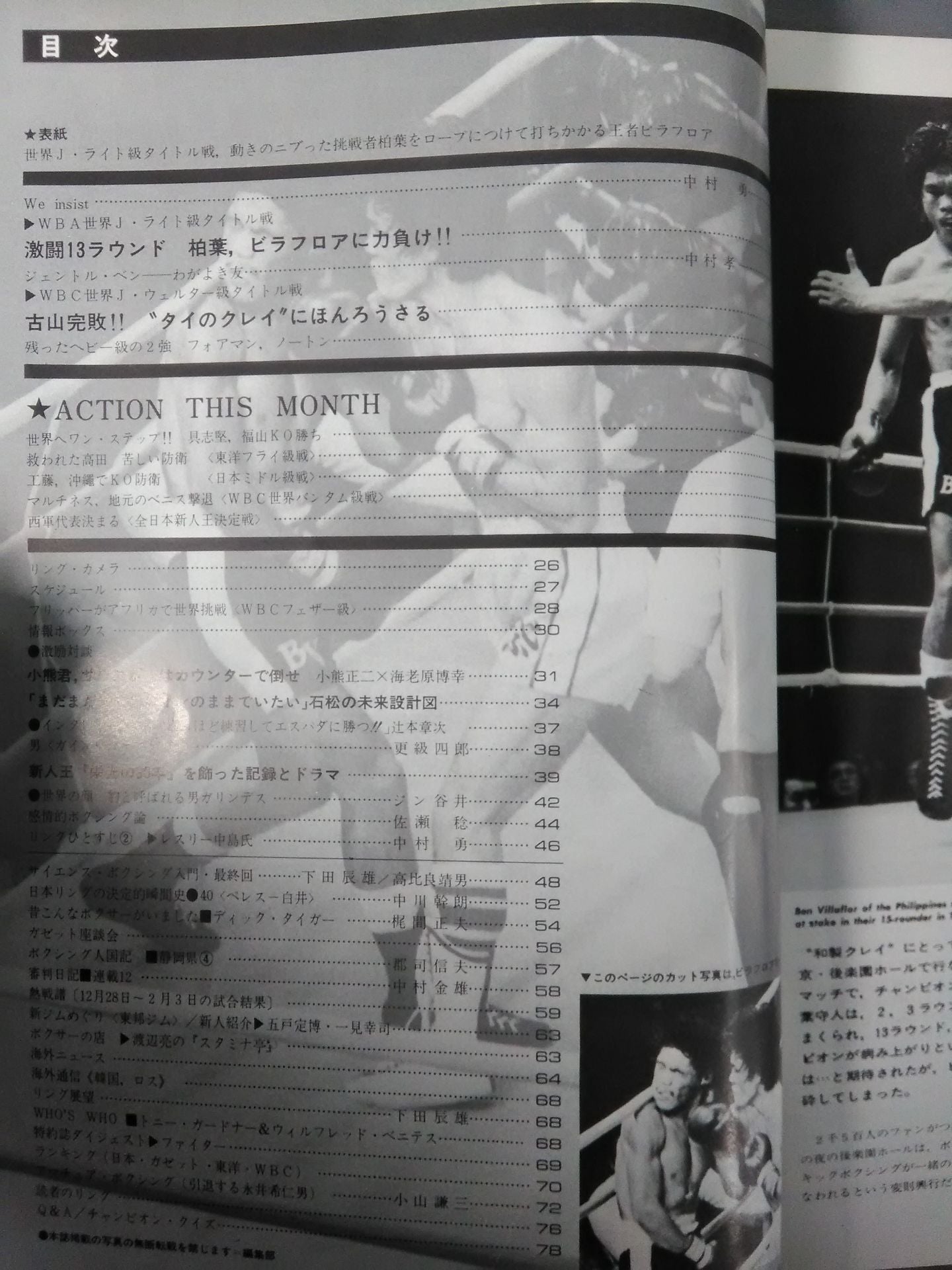 1976年 世界タイトル挑戦 柏葉、古山ともに完敗 表紙:世界J・ライト級タイトル戦、動きのニブッた挑戦者柏葉をロープにつけて打ちかかる王者ビラフロア