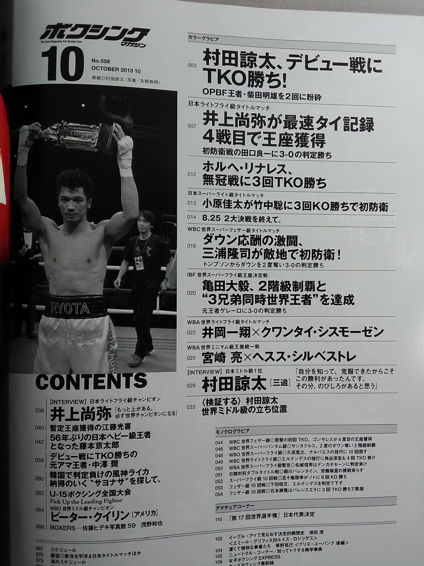 2013年 圧巻デビュー!村田諒太 OPBF王者を粉砕 表紙:村田諒太