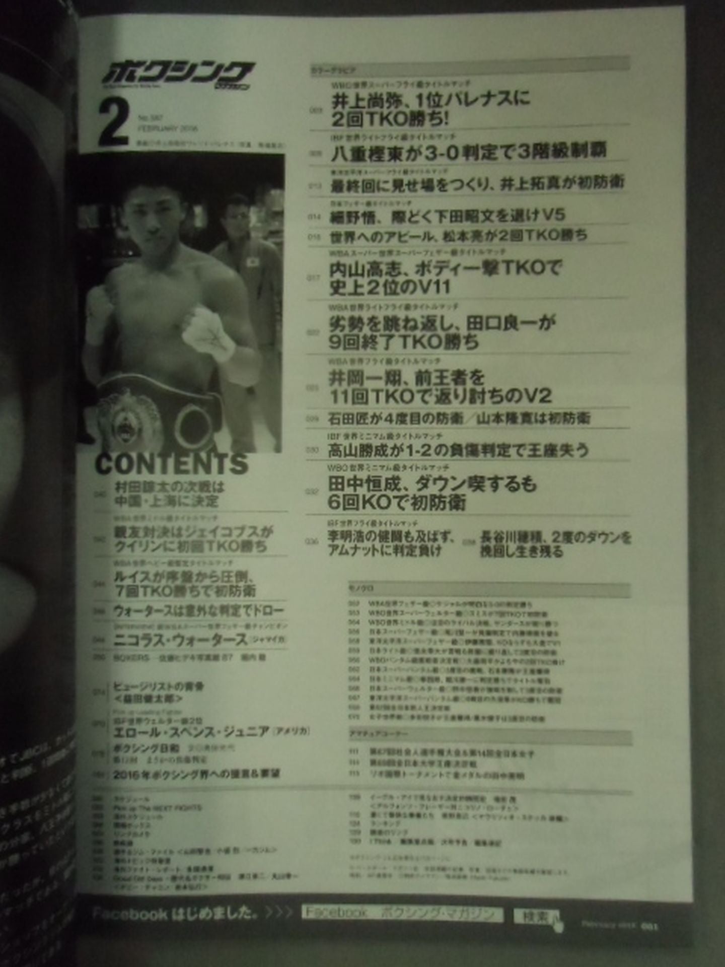 2016年 時代の奇跡!井上尚弥、1位挑戦者を4分20秒で破壊 表紙:ワルリト・パレナス
