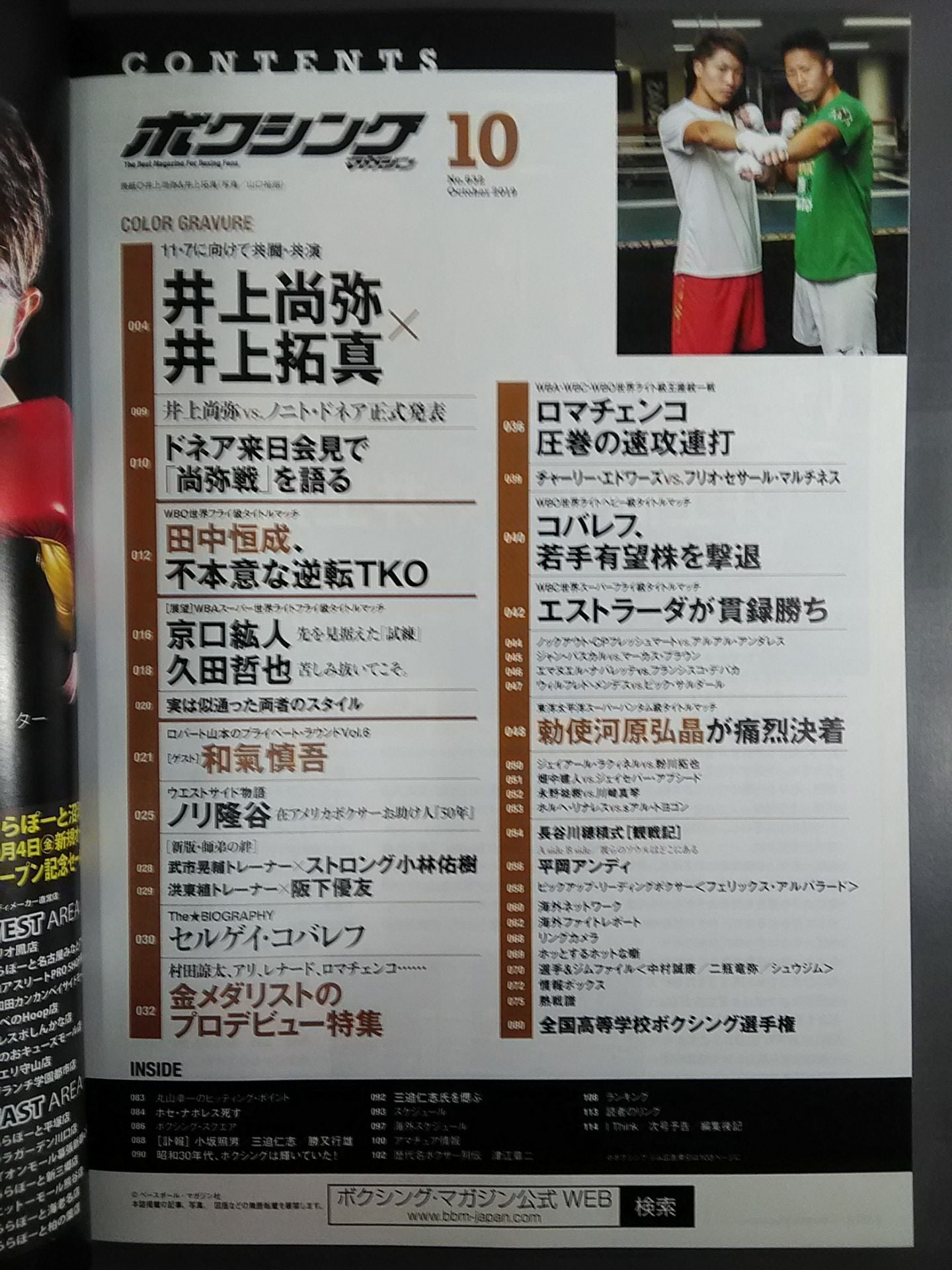 2019年 井上尚弥vsドネア発表 / 田中恒成V2 / 京口vs久田プレビュー 表紙:井上尚弥、井上拓真