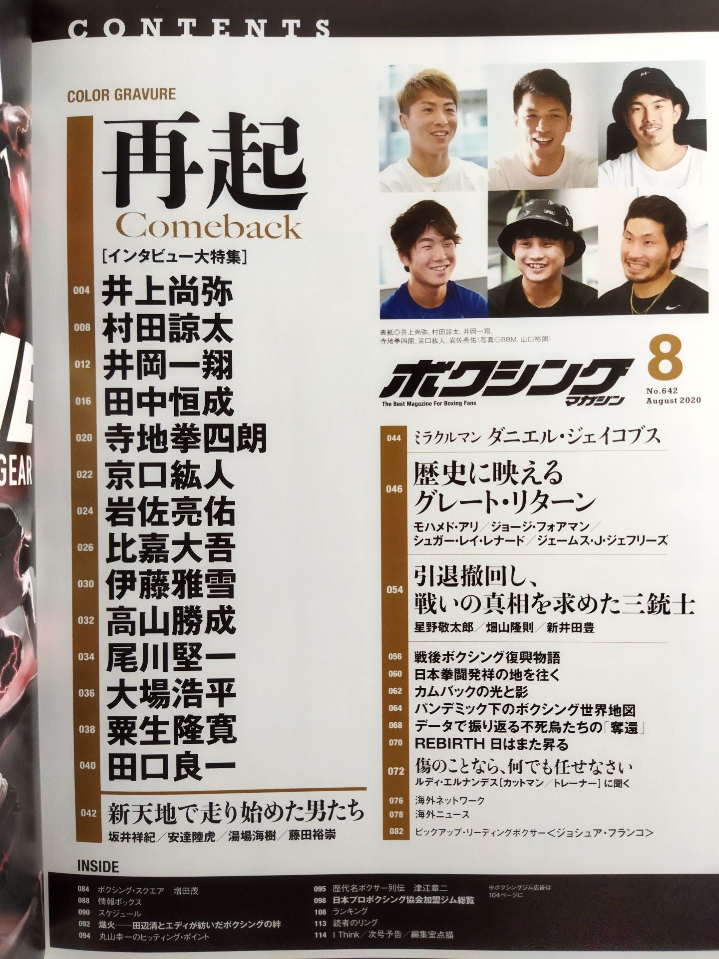 2020年 再起 Comeback ボクシングが、帰ってくる。 表紙:井上尚弥、井岡一翔、村田諒太、寺地拳四朗、寺口紘人、岩佐亮佑
