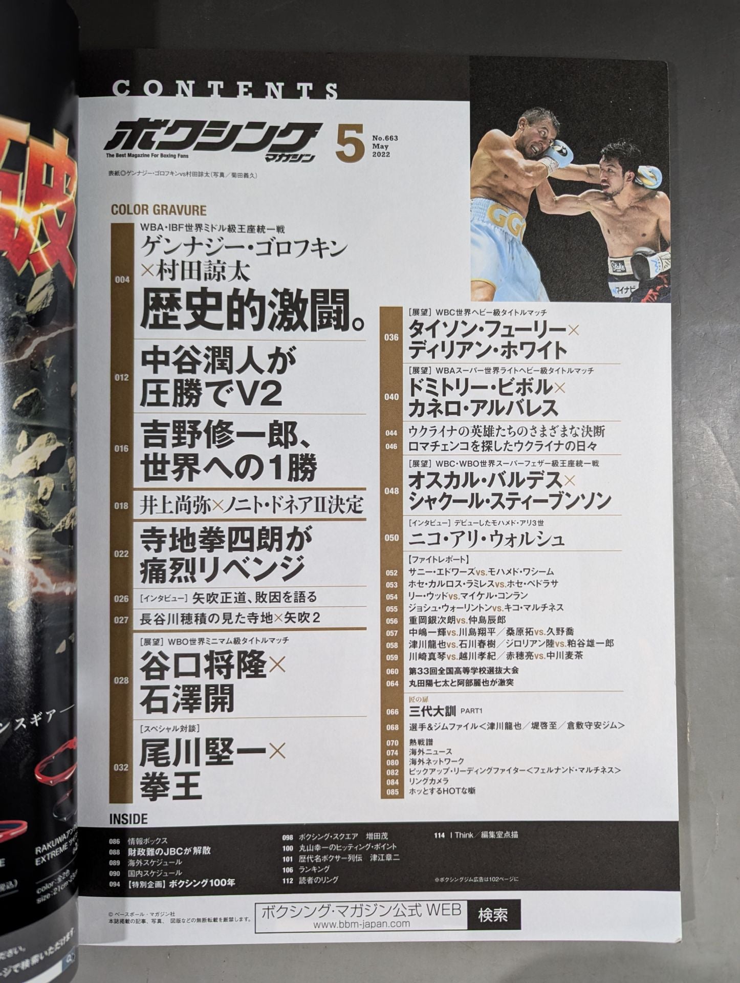 2022年 ゲンナジー・ゴロフキン×村田諒太 歴史的激闘。 表紙:ゲンナジー・ゴロフキン、村田諒太