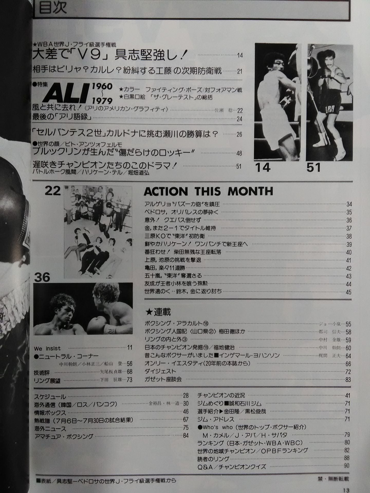 1979年 大差で「V9」具志堅強し!/アリ引退特集 / 【付録】◯ピンナップ(モハメド・アリ/アリvsフォアマン戦) 表紙:具志堅用高vsラファエル・ペドロサの世界J・フライ級選手権戦