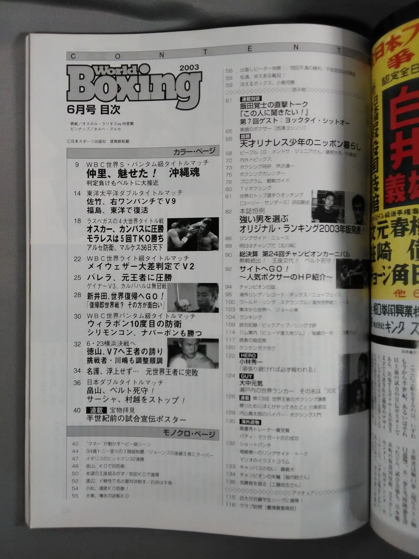 2003年 仲里惜しくも世界逸す デラホーヤ楽勝 / 【付録】◯ピンナップ(ホルヘ・アルセ) 表紙:オスカル・ラリオスvs仲里繁