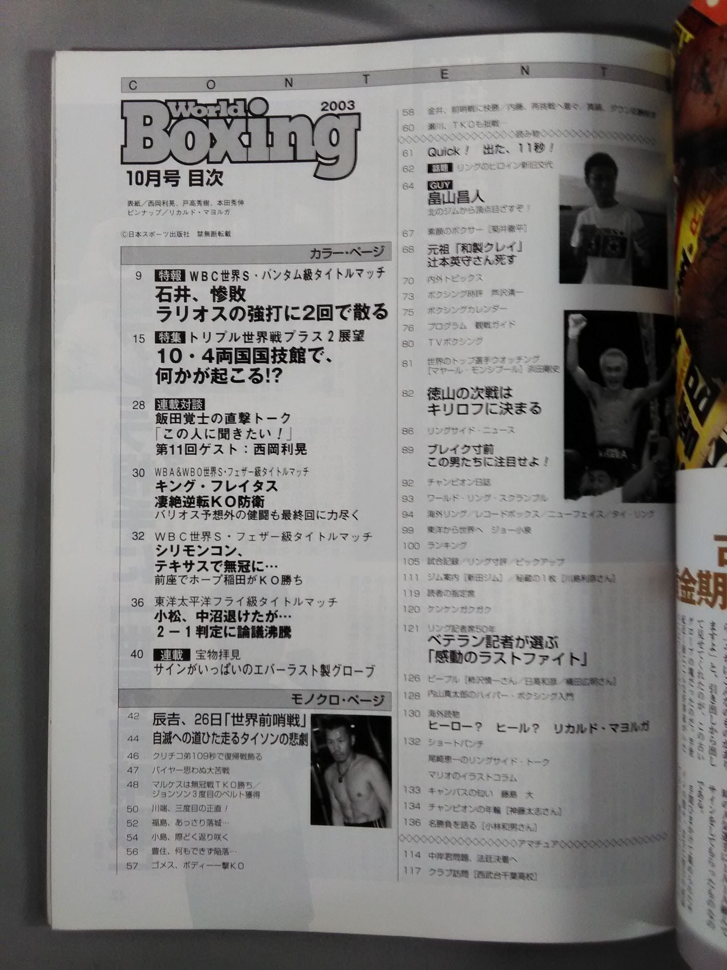 2003年 特集「10・4 トリプル世界戦+2」展望 / 【付録】◯ピンナップ(リカルド・マヨルガ) 表紙:西岡、戸高、本田
